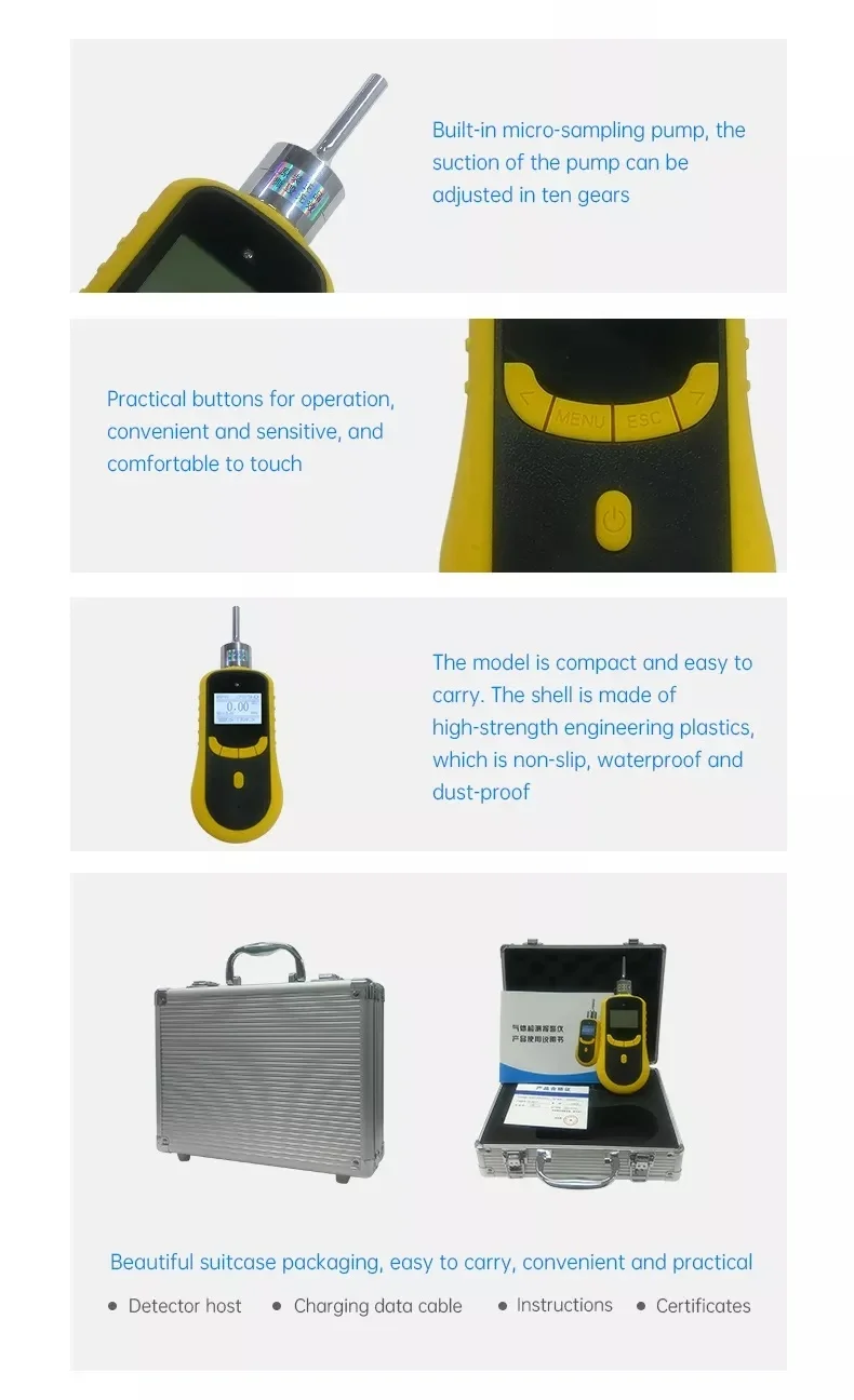 Measure Range | 0-1ppm; 0-5ppm; 0-10ppm; 0-20ppm; 0-50ppm; 0-100ppm; 0-200ppm; 0-500ppm; 0-1000ppm (optional) | ||||