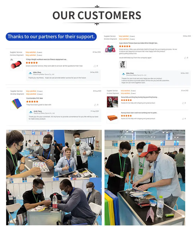 Now we have 6 product series: sports mats, gymnastic mats, soft mat, protective mats and other sponge mats series; weight sandbags, weight vests, series and other weight training product series; jump box and Plyometric box series; child education soft product series; Gymnastics equipment series; Bulgarian power bag, power weight bag, wall ball and other fitness equipment series; all of these products are favored by customers at home and abroad, and exported to more than 30 countries and regions in Europe, North America, South America, Asia, Australia and so on.