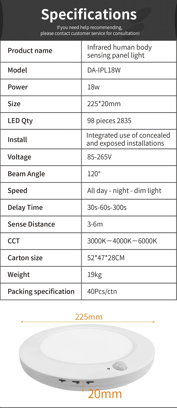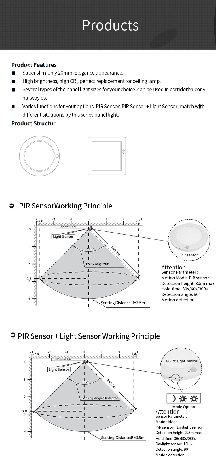 Product name | LED Ceiling Panel Light with Motion Sensor |