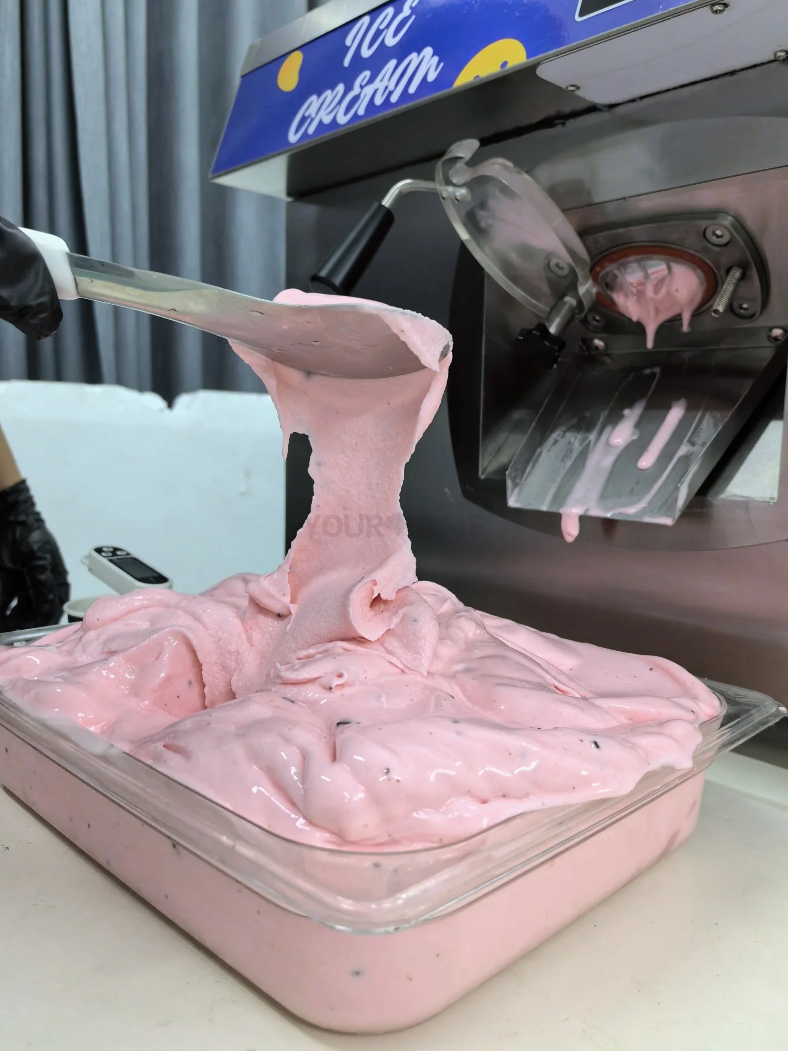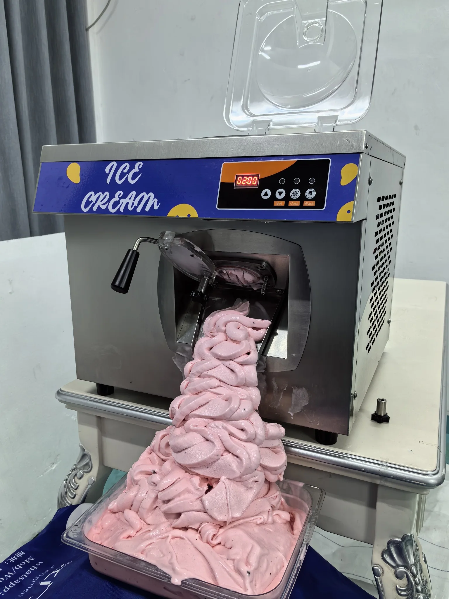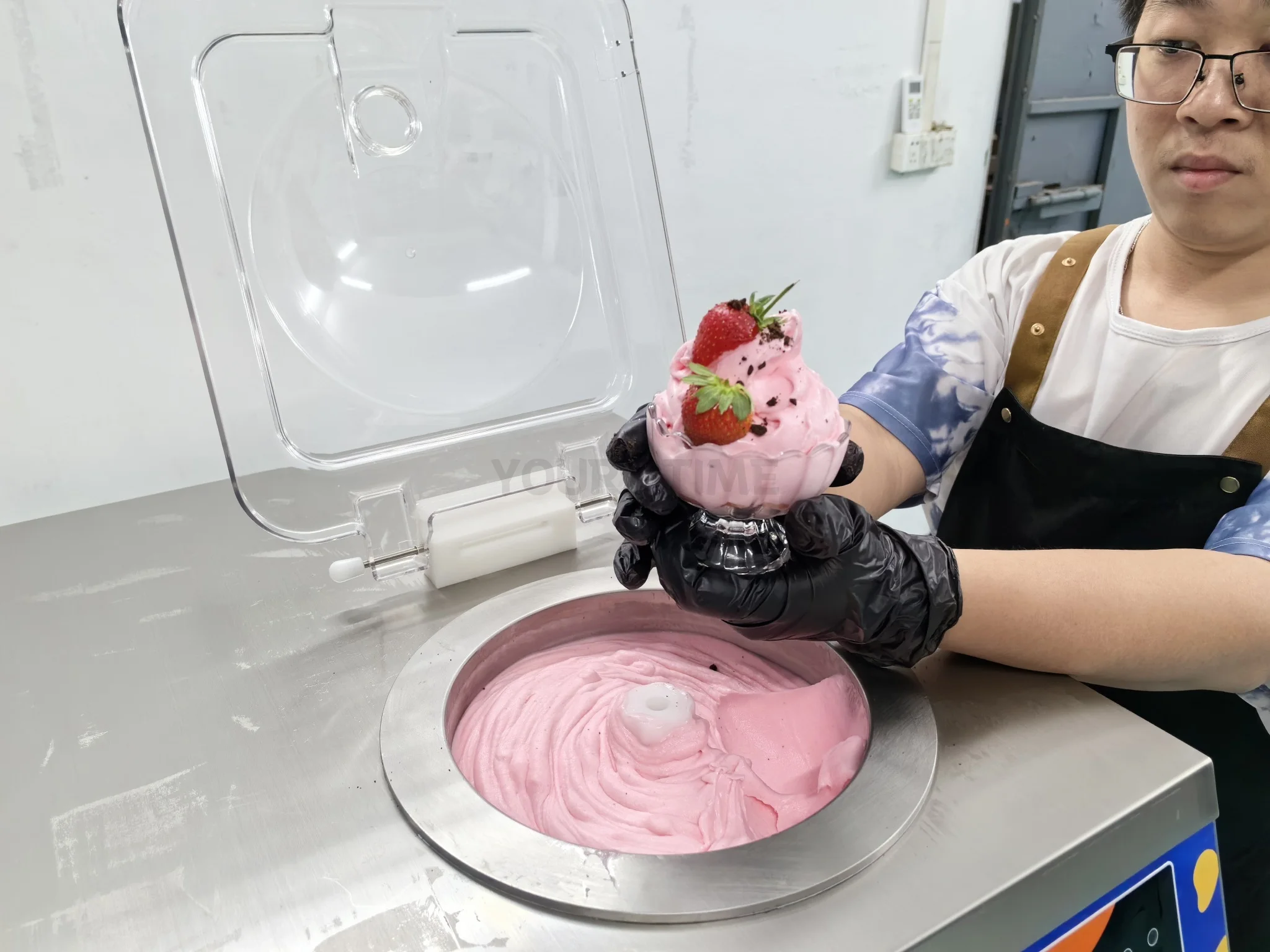 This machine adopts a transparent lid, which makes it easy to understand the state of the ice cream. After the ice cream is made, the automatic preservation can make the ice cream in the best condition to be displayed to many ice cream enthusiasts and buyers.