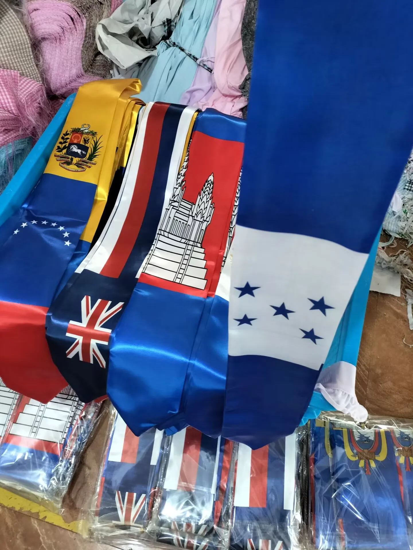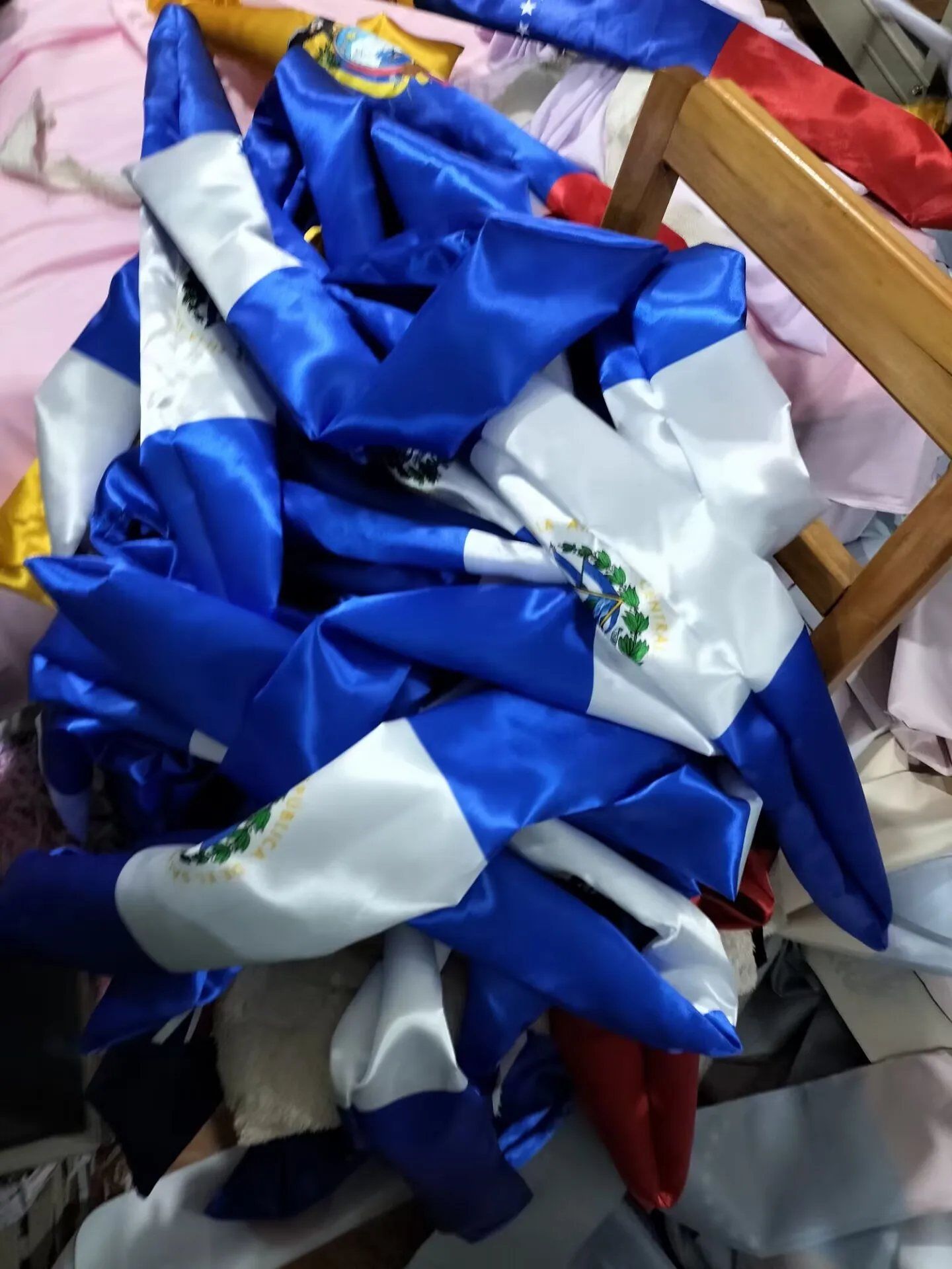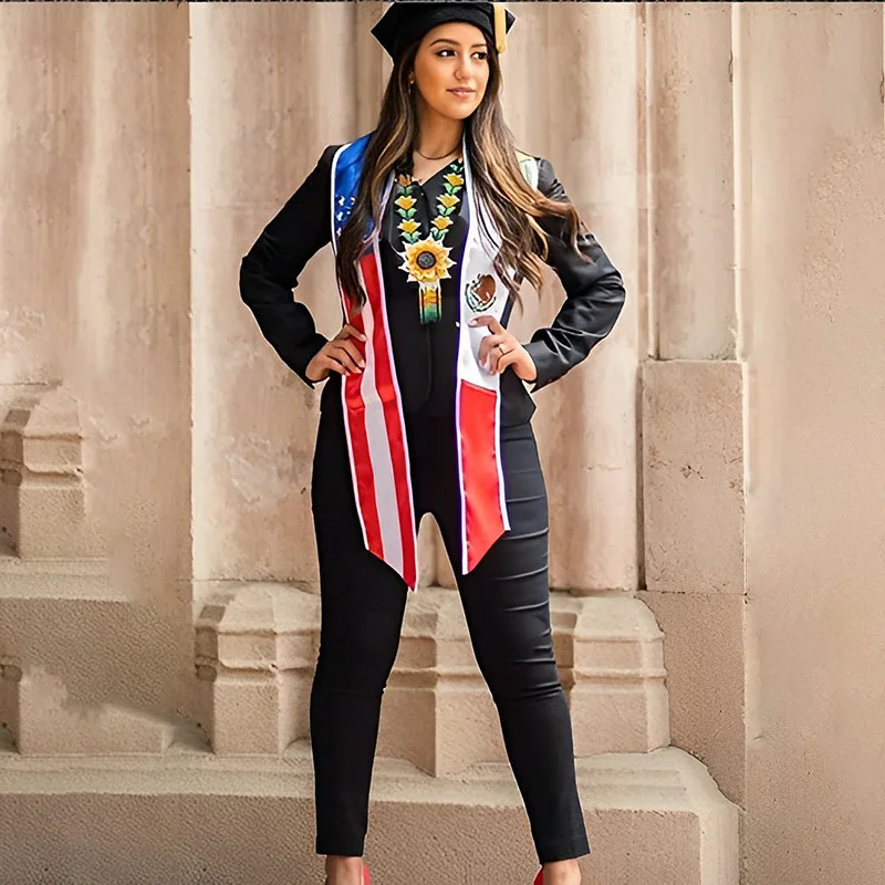 * Satin * Hand Wash Only * QUALITY- Each graduation stole is from high quality dancelight satin that has the perfect combination of shimmer and weight so that it lays flat against body. * SELECTION- Choose from many different flags from all over the world * PRIDE- Show your country with this colorful and festive addition to your graduation attire. Great for Latin American and Spanish majors. Or just anyone who want to add some flair to the boring graduation cap and gown. * SPEED- Purchases made via Amazon Prime generally arrive in 1-2 days. Great for the last minute addition to any graduation plan. * COMFORT- Each stole has V-neck backing so that it doesn't bunch up at the back of the neck. It lays flat on neck and creates a clean, flat look.