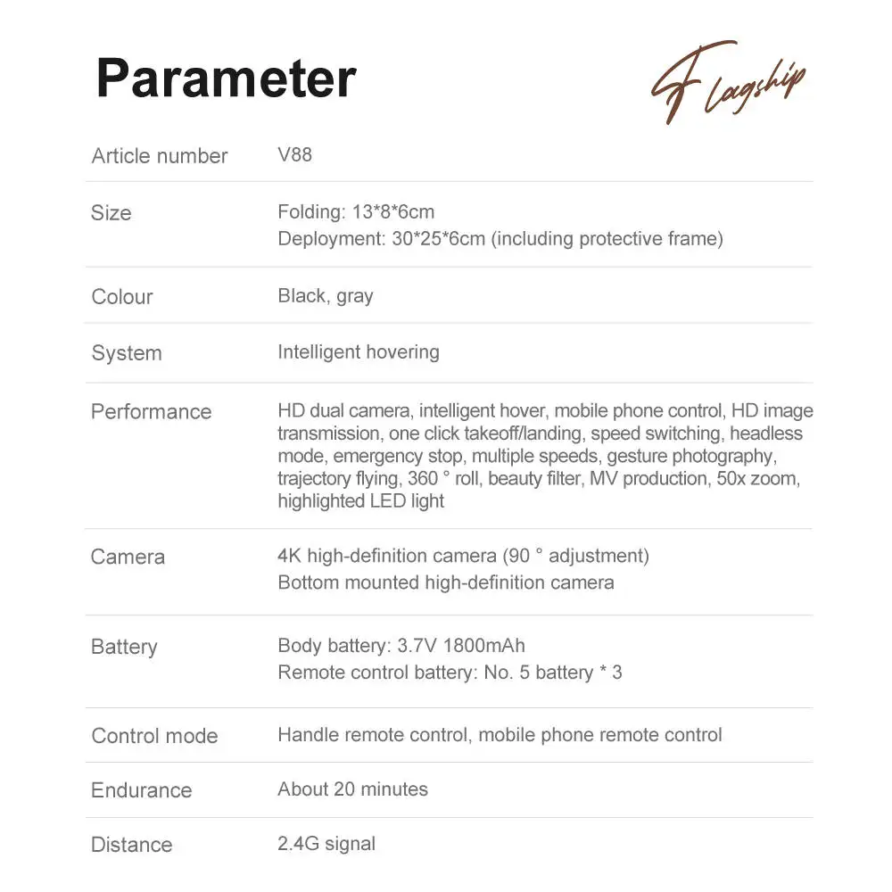 8. 5GHz anti-interference technology, six-axis gyroscope, more stable flight, more convenient control.