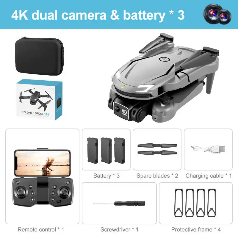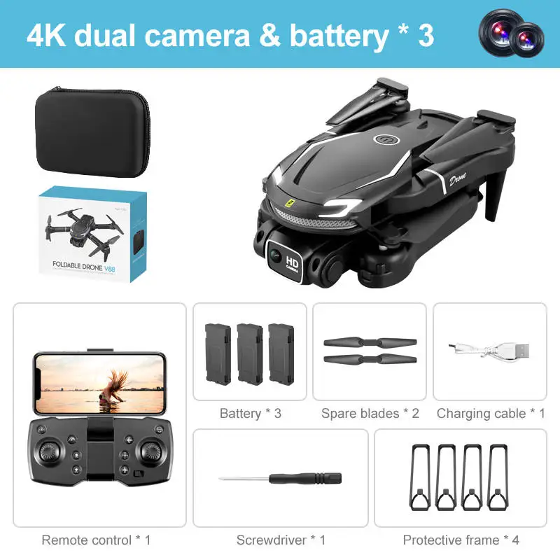 1. The front lens is placed with wide-angle 8K high-definition WIFI, and the optical flow high-definition lens at the bottom can