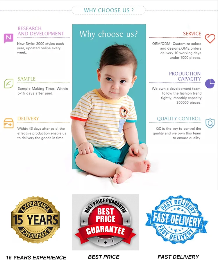 A: We are professional manufacturer of children’s clothes, our main products are T-shirts , pants, shorts, sweatshirts ,fleeces, jackets, cardigan sweaters and baby suits for kids aged 0~15.