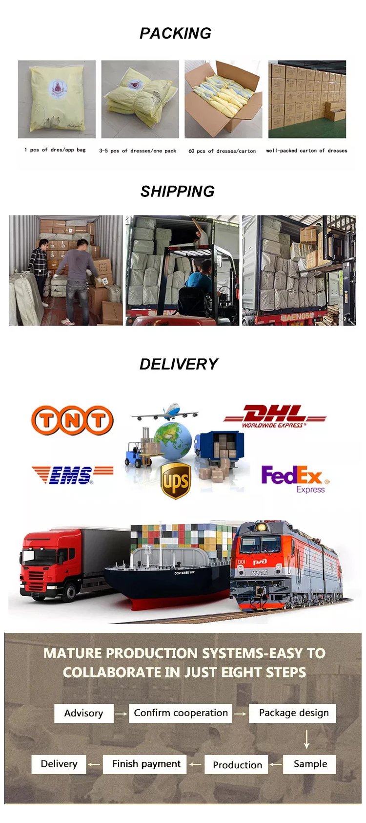A:If you order the current designs, they are ready to ship. All parcels will be sent out within 7 days after payment receipt. Delivery time depends on which destination country. If custom service , the specific delivery time depends on the items and the quantity of your order.