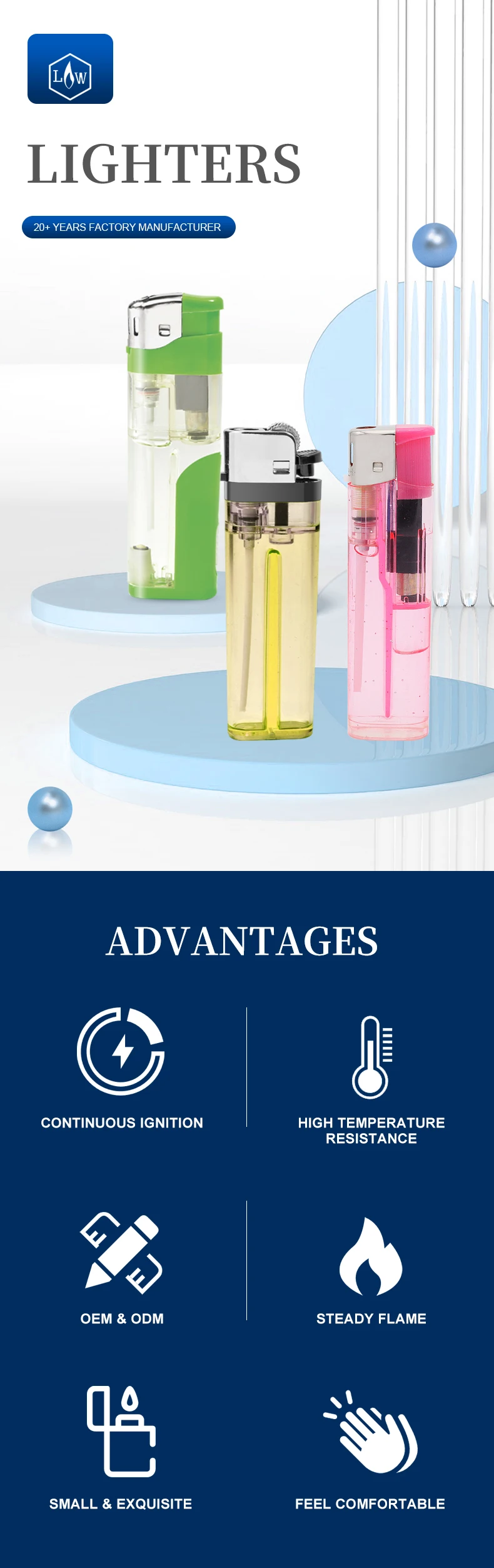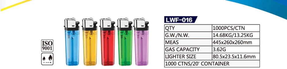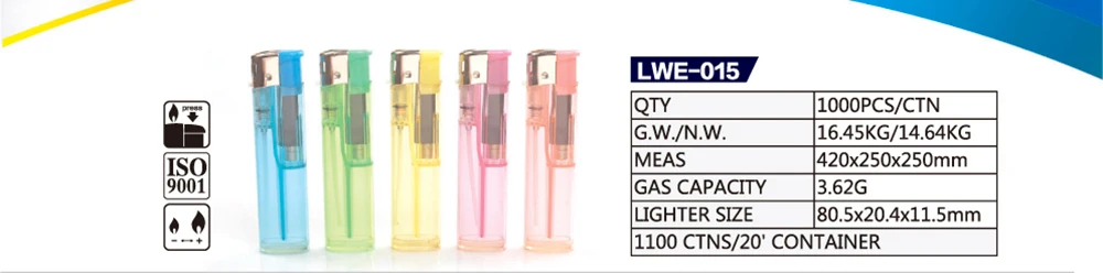 Package | 50pcs lighters/box;1000pcs/ctn; 1100ctns/20'FCL | |