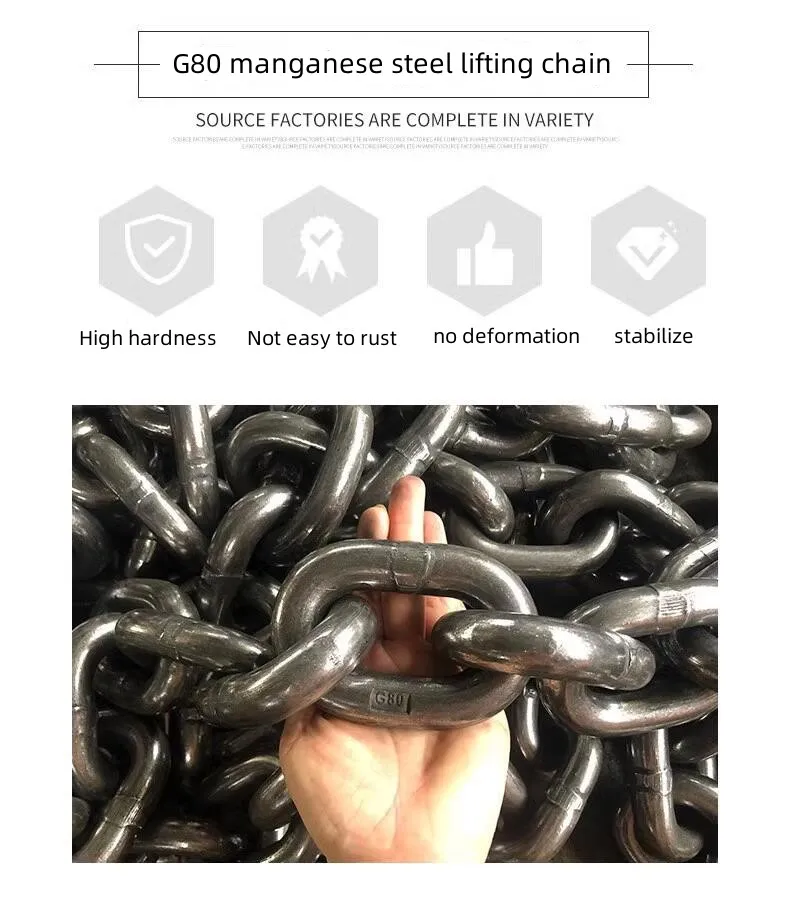 The G80 level lifting chain is an essential lifting device for lifting heavy objects. It is produced by advanced assembly line equipment in Germany, using high-quality alloy steel (manganese steel, etc.) materials, and strictly controlling quality throughout the entire process. Only in this way can the lifting chain meet the international standard of level 80.