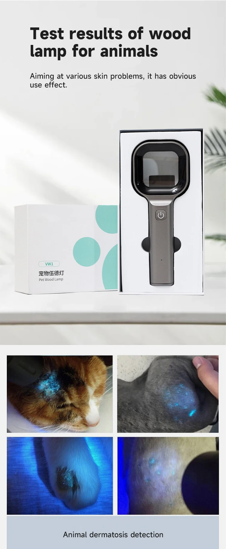 Увеличительный дерматологический анализатор для исследования кожи с лесной лампой домашних животных и