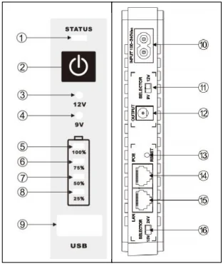 9). USB (5Vdc) output 10). AC input socket