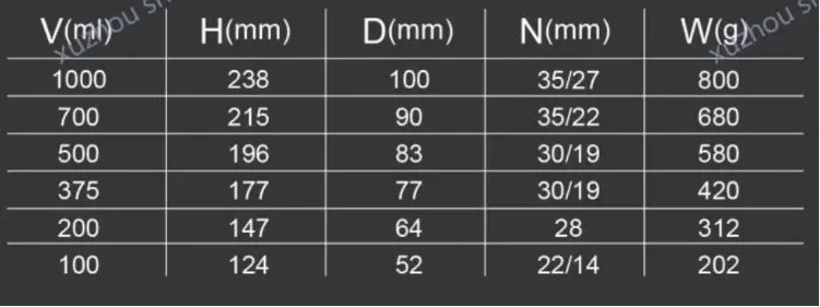 Bottle size | V:100ml/200ml/375ml/500ml/750ml |