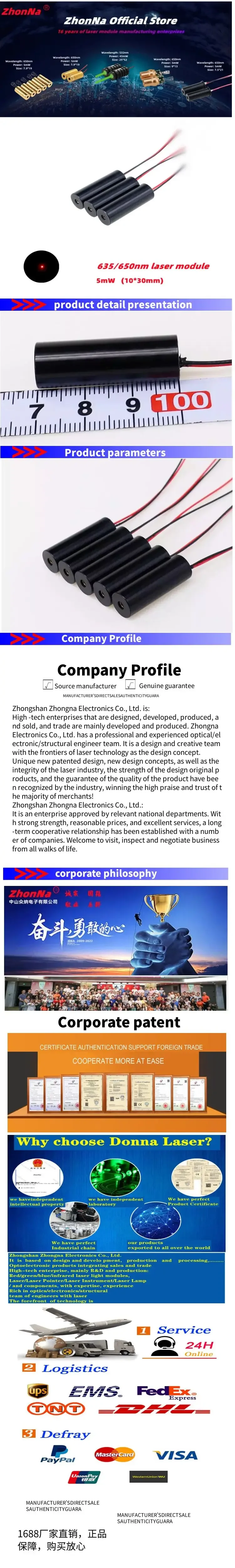 [ZhongNa]: We can develop, design, and process laser modules and optical systems according to the special requirements of customers. We can also provide OEM and ODM for laser system applications and special purposes, and undertake bulk orders. Welcome to contact us!