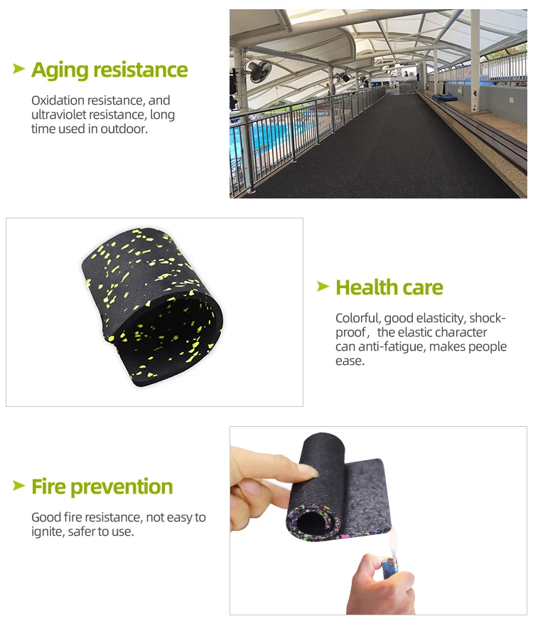 Material | Using environment-friendly rubber powder, environment-friendly EPDM rubber granules and environment-friendly glue as raw materials, using steam hot-pressing, circular cutting sheet and other technologies |
