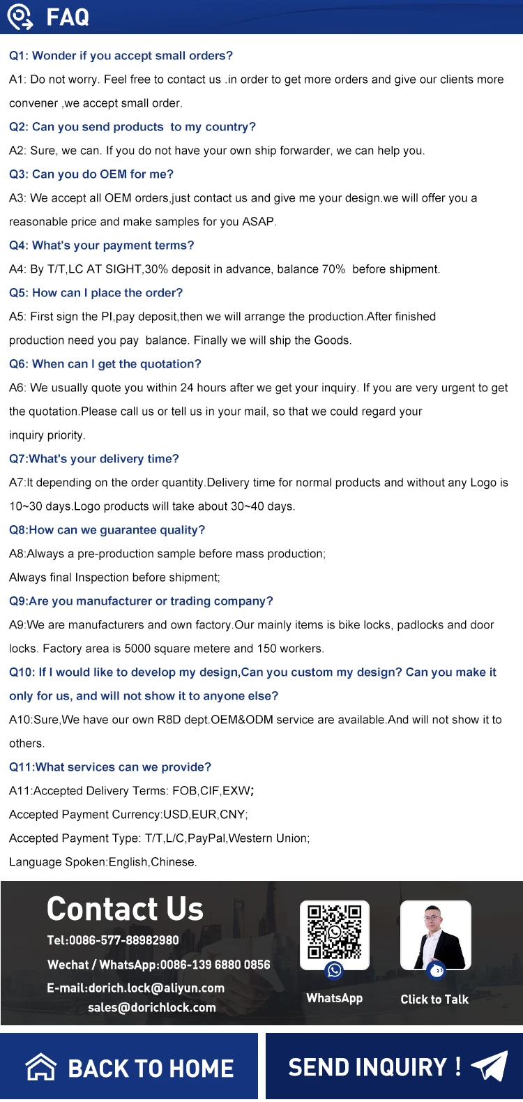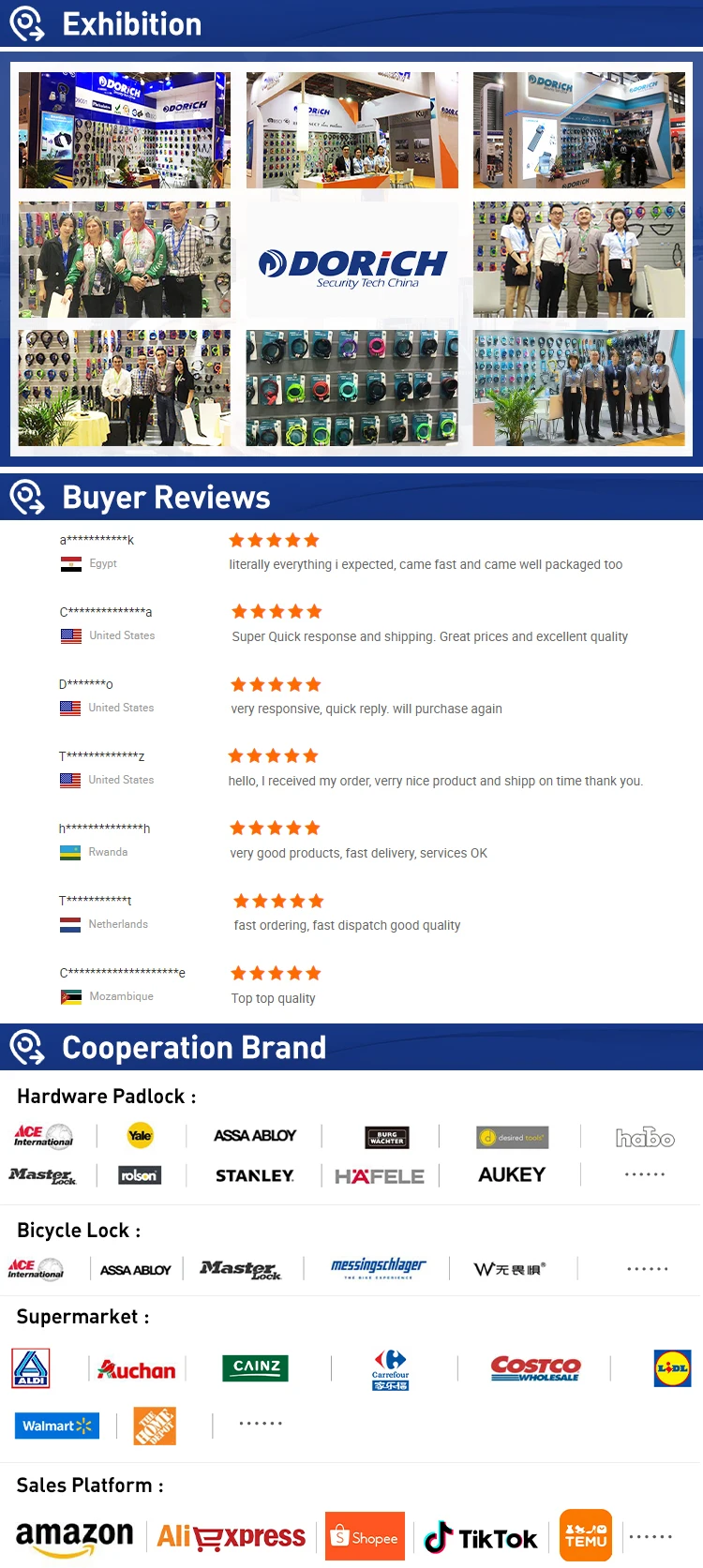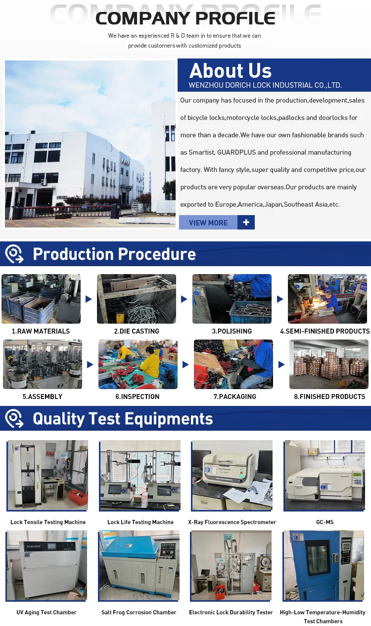 Our company has focused in the production,development,and sales of bicycle locks,motorcycle locks,padlocks,and door locks for more