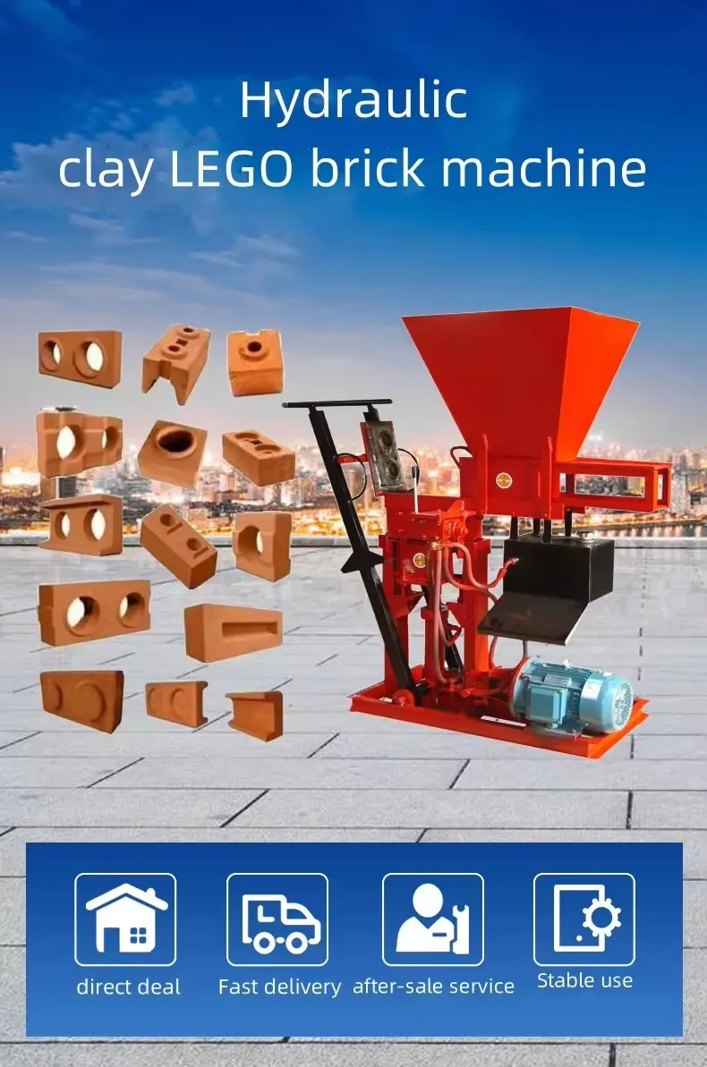 The clay LEGO brick machine has higher productivity than other small block machines. This type of brick machine is manufactured on the basis of technological transformation of the original formed brick machine. The density of the brick increases, the molding speed is faster, and the strength of the brick is more uniform. This model is suitable for all customers. Advanced technology makes the host design reasonable and hydraulic demolding. High quality steel and precision welding extend the lifespan of the machine, reducing the occurrence of hydraulic system malfunctions during operation. It has many functional characteristics such as low price, reliable performance, convenient operation, stability, and low power consumption. Raw materials, concrete, cement,small stones, Clay,stone powder, sand, slag, construction waste, etc. can be used in the production process.