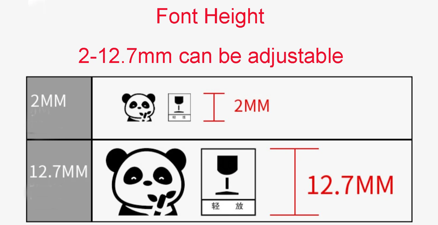 Printing Weight:2-12.7mm adjustable | Printer weight:3KG | Rated voltage :16.8V | Printing accuracy :600 dpi HD | ||