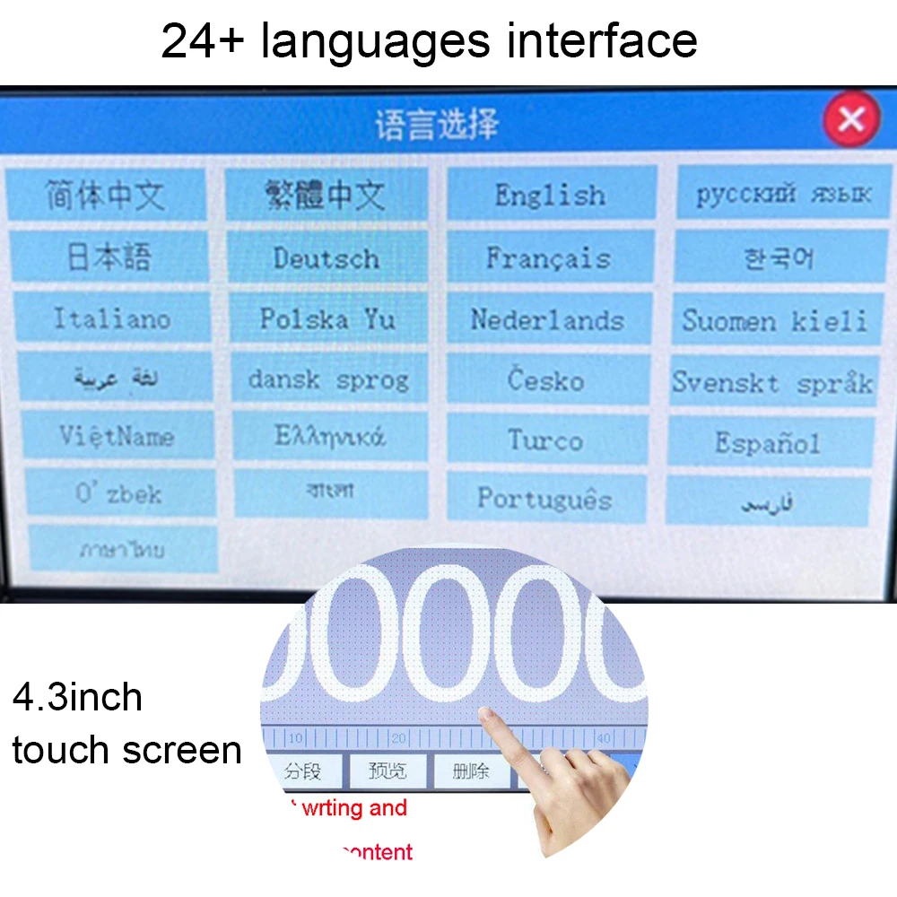 Support Screen Edit or U disk input | Languages: 24+ | ||||