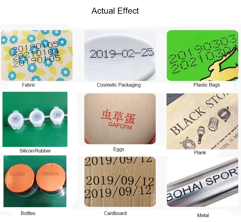Printing material : metal,plastic,pipe,foam,carton,wood,stone | Printing content : text,graphic code, date, table,graphic logo,etc | ||||