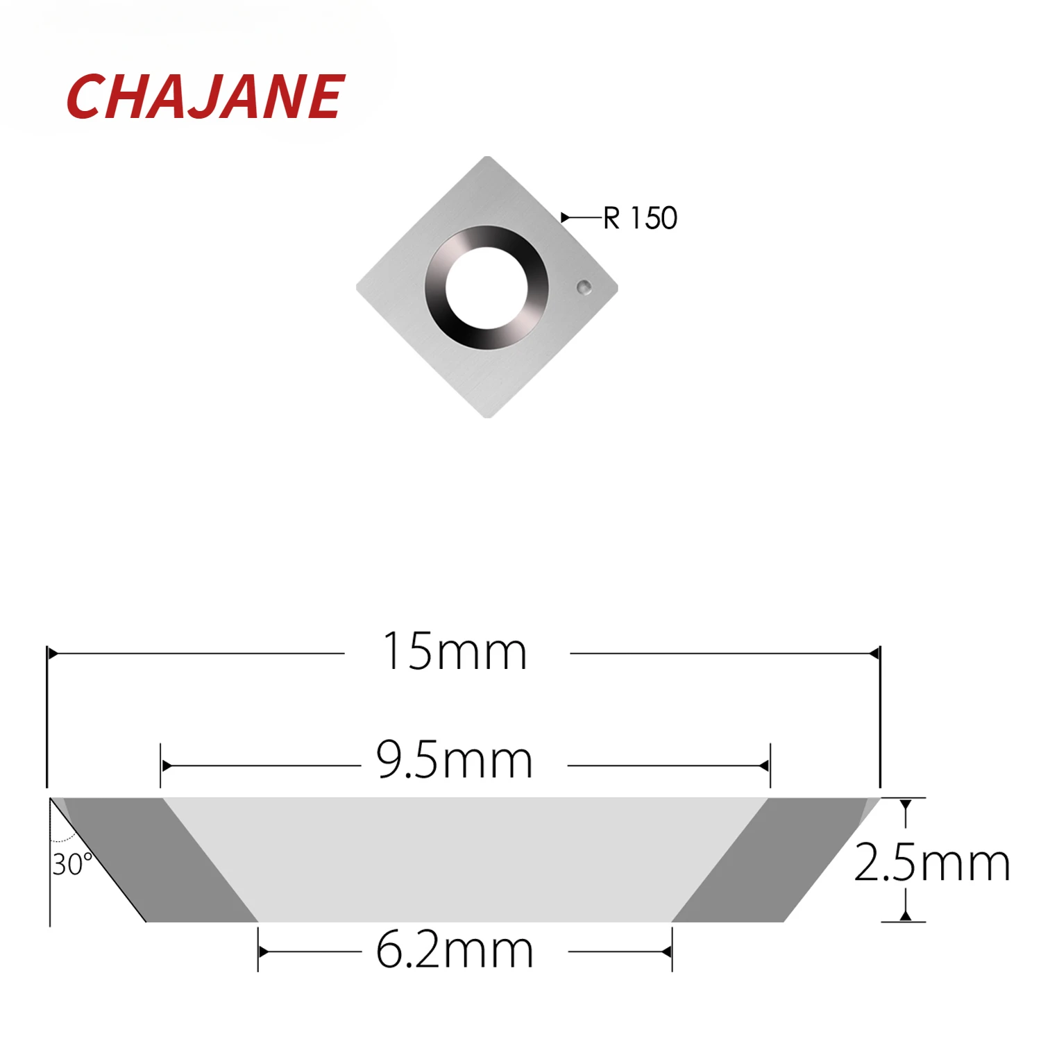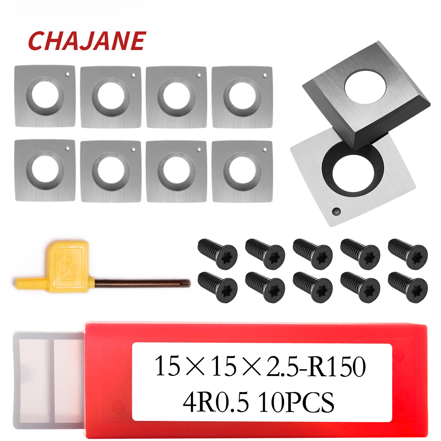 1.The 15x15x2.5mm-R150 4R0.5 Square Shape Tungsten Carbide Insert Cutter with 4 Cutting Edges Is Designed for a Range of Bands Woodworking Planers Or Jointers with Helical Cutter Heads, Such as Northtech, Axminster, Woodmaster and Other.The Face Radius and Corner Radius of Cutter Help Reduce Scratches.