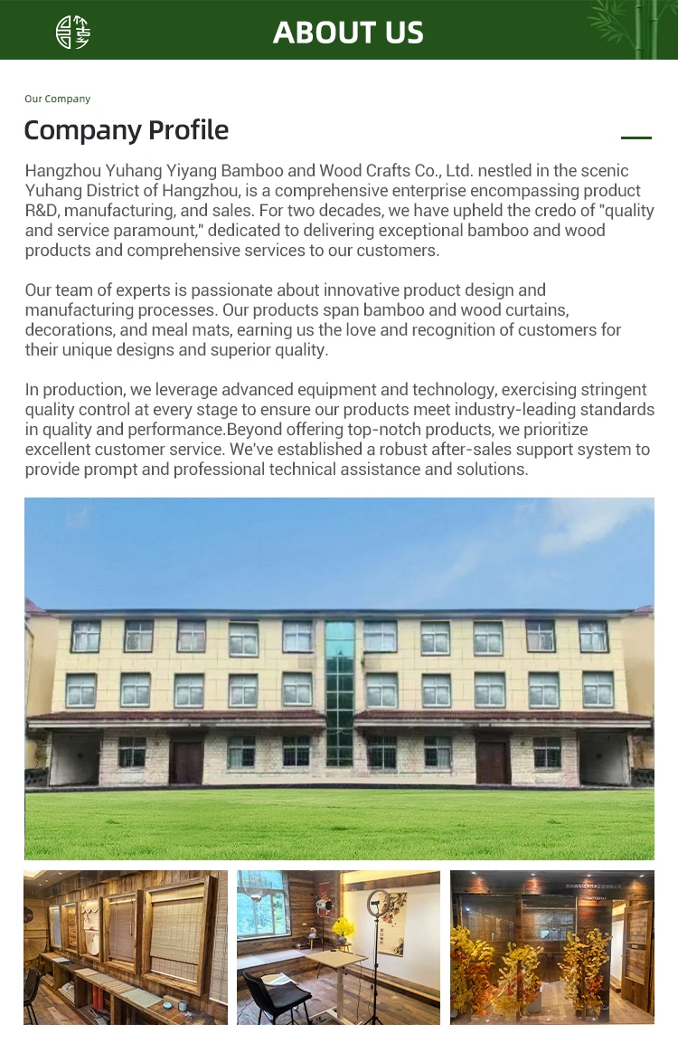 The company has a professional team that innovates product design and production processes. Our products cover bamboo and wood curtains, bamboo and wood decorations, bamboo and wood placemats and other fields, and have won the love and recognition of customers with unique design and excellent quality.