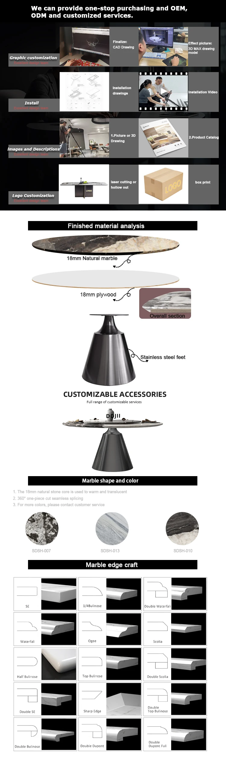 Description | * Both stability and longevity * 36mm thick marble stone table top* Simple leg or frame assembly Required |