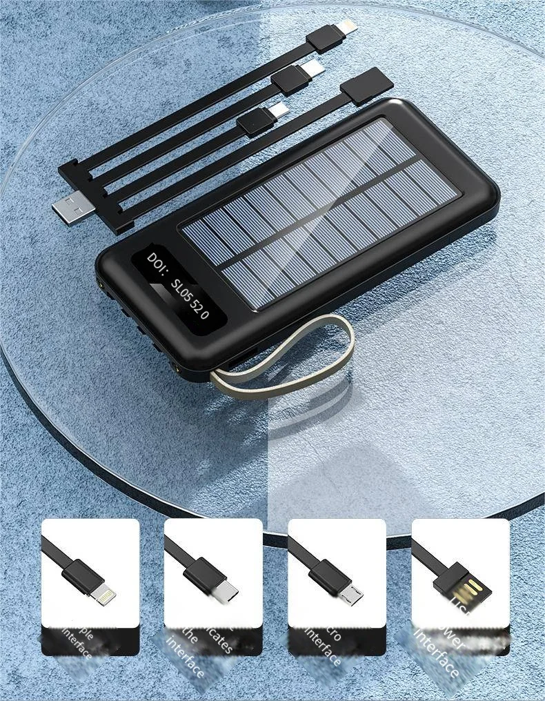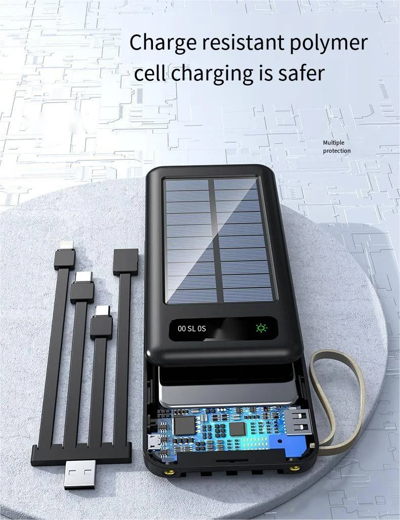 2.Solar Panel Functionality: Stay connected on the go, even in remote locations, with the built-in 2V 130mAh solar panel, allowing you to charge your devices using solar energy or conventional power sources.