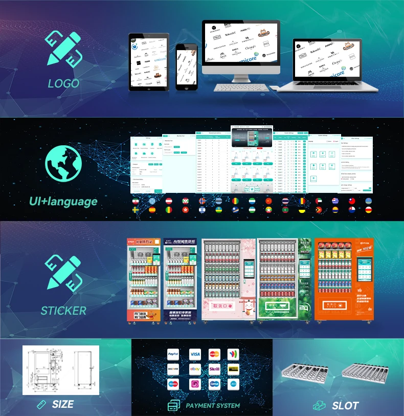 Настраиваемый наружный водонепроницаемый торговый автомат для закусок монетный маркер код QR платежные системы металлический материал функция SDK