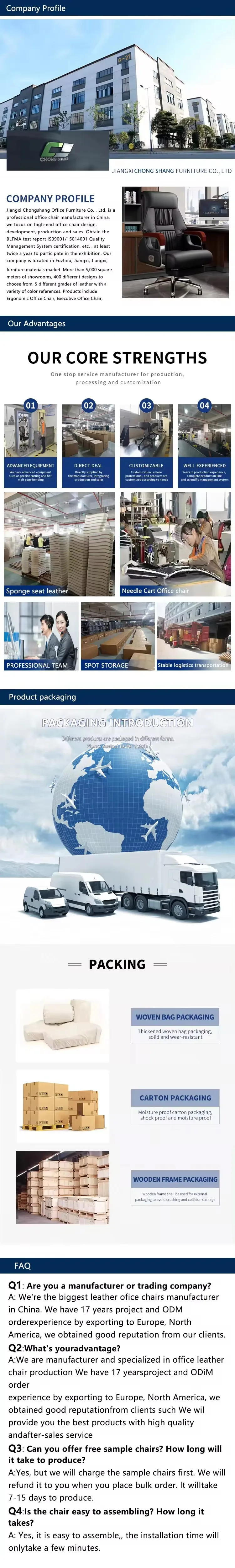 A: We're the biggest leather ofice chairs manufacturer in China. We have 17 years project and ODM orderexperience by exporting to Europe, North America, we obtained good reputation from our clients.
