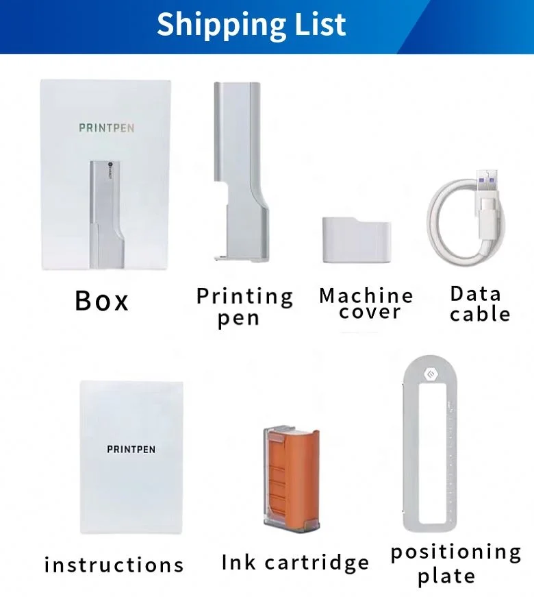 Battery: Built-in 1*7.4V 1200mAh battery | Printing accuracy: 300psi | Charging mode: Type-C | ||||