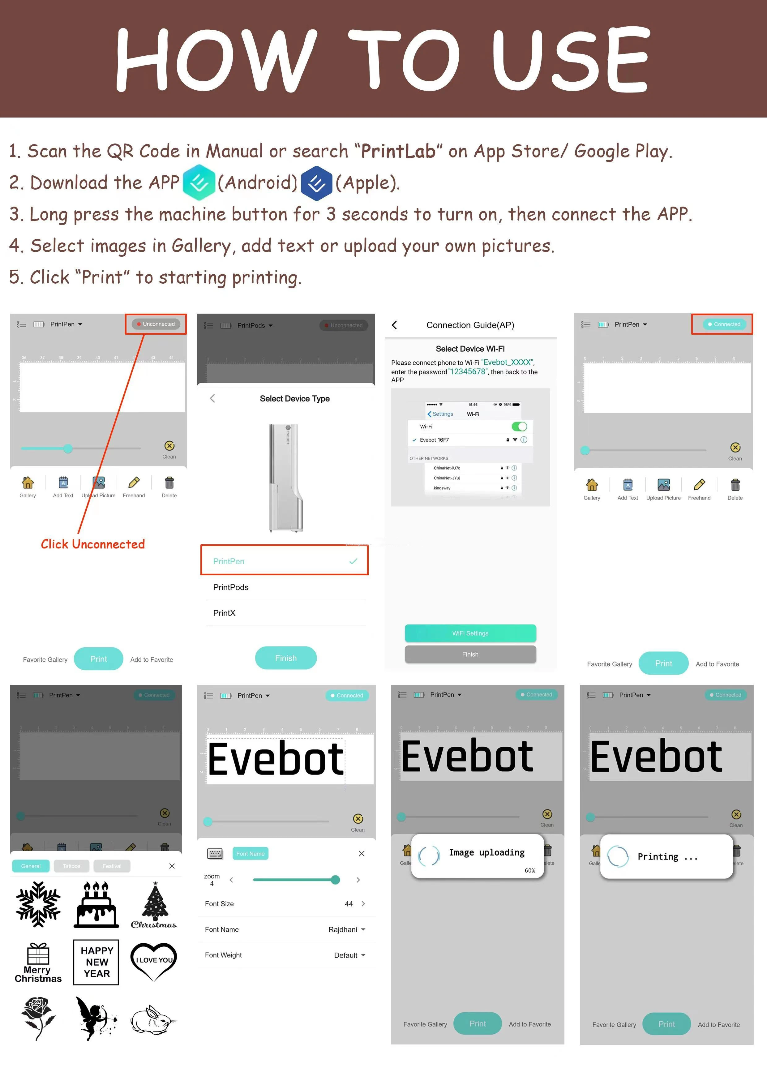 Print size: 10 x 2.6cm(height) / 3.94 x 1.02in Font color: Coffee, Red, Black (Optional) Download APP: You can customer service to provide a QR code to download PrintLab, or search for PrintLab in App Store to unlock more surprises! It comes with multiple font patterns and tattoo patterns to choose from, and system will continuously update materials in later stage. |