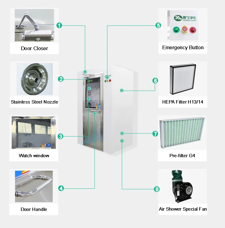 Our company produces a fully automatic high-tech intelligent air shower room with a voice prompt system. When people enter the air shower, the automatic voice system prompts people to complete the entire process of blowing, showering and dust removal in an orderly manner. Humanized voice prompts give people a kind of cordial feeling, and achieve an effective purification effect.