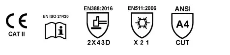 15 gauge nylon outer liner, 7 gauge terry acrylic & glass fiber inner liner, first layer smooth latex full coated, second layer sandy latex palm coated, cut resistant, water resistant, winter work gloves.