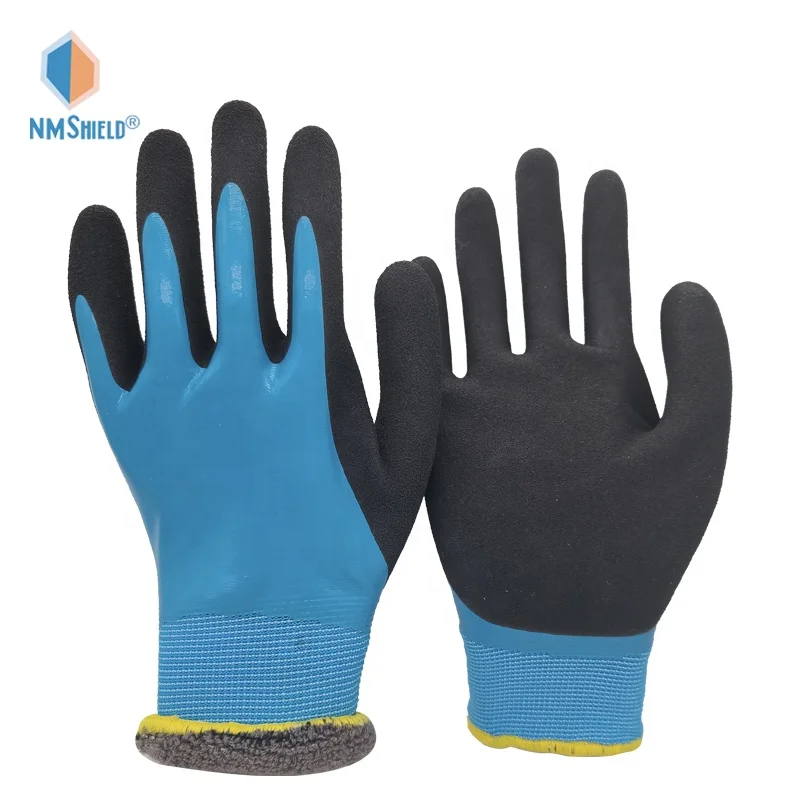NMSHIELD Construction Waterproof Nylon Glove Sandy Latex Cut Level 4 Gloves Thermal Winter Glove for Worker