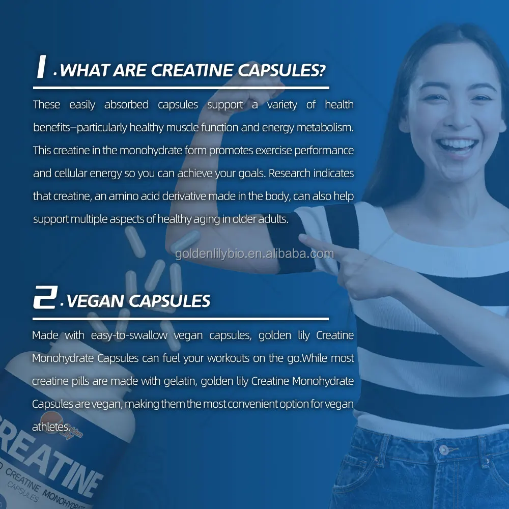 100% Pure Creatine Monohydrate- golden lily creatine capsules are made of 100% pure creatine, which is the only well-studied ingredient. These creatine capsules are gluten-free, non-GMO, unflavored, have no pigment, and are sugar-free, so you can have them without burden.