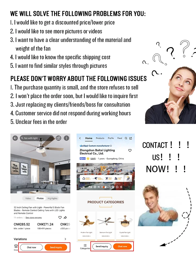 Here is the question you want to know Q1: Are you a manufacturer? A1: Yes, we are a lamp manufacturer with 10 years of production and manufacturing experience. We are a modern company that produces and designs various types of chandeliers, chandeliers, ceiling lamps, ceiling fans, table lamps, floor lamps, etc. Own your own factory and warehouse Q2: Can you provide OEM or ODM services? A2: Yes, our company relies on our excellent R&D team, perfect quality and lighting solutions, and specializes in providing OEM and ODM services. Q3: Can I receive a sample order? A3: We welcome sample testing and quality inspection. You need to bear the sample shipping and sample fees, which will be refunded in your official order. Q4: What is the lead time for sample delivery? A4: Inventory samples require 1-3 days of preparation time. Customized samples require 7 to 20 working days to be prepared according to your specific requirements. Q5: How to ensure quality? A5: We have mature production and manufacturing technology, and before large-scale production, your sample products will pass all aspects of quality inspection. Unified packaging after mass production Q6: What's kind of packing for your products? A6:we are using 5 ply strong export carton, inside have 2 ply polyform. our packing can pass drop test.