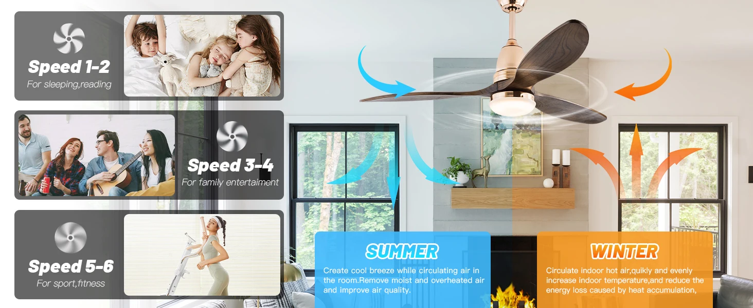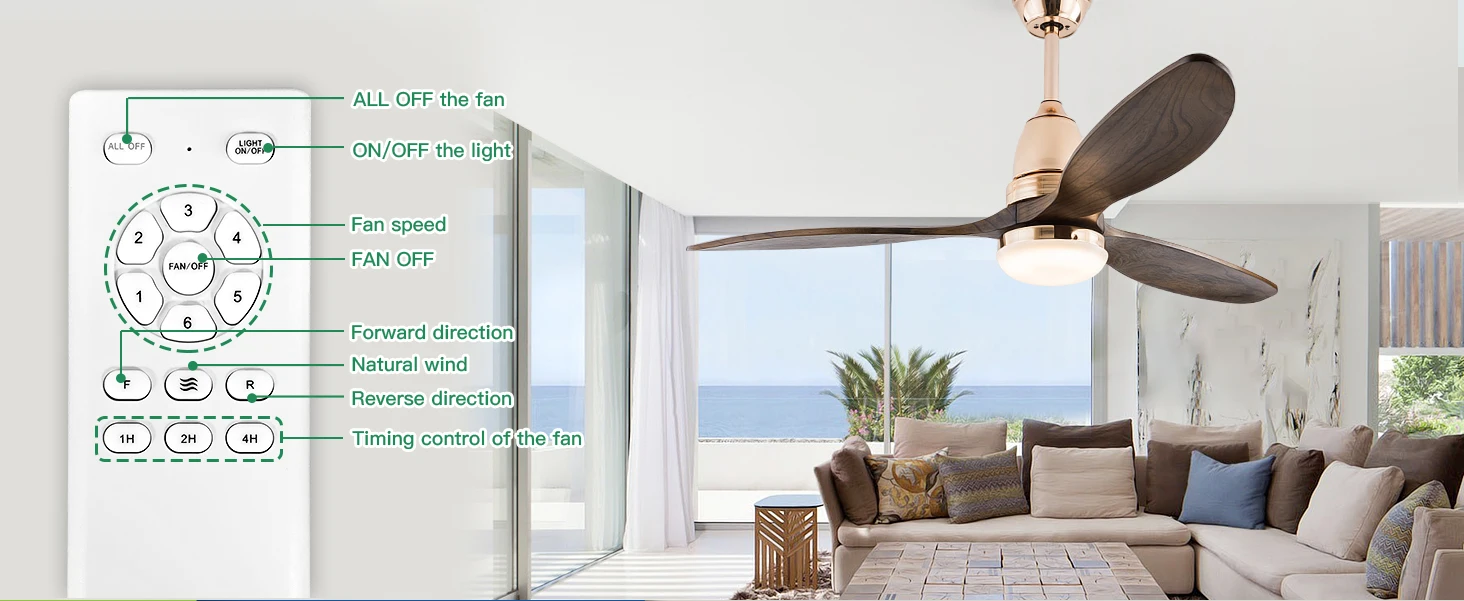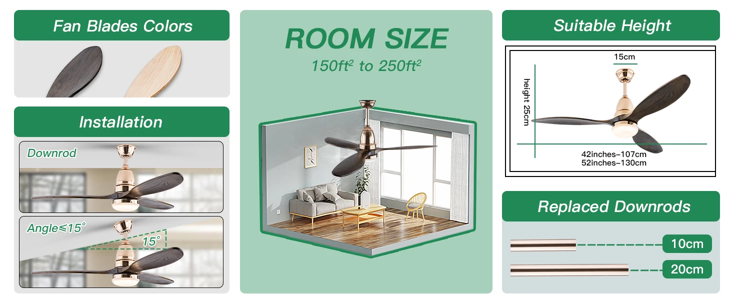 52-дюймовый потолочный вентилятор среднего века со светлым низкопрофильным дистанционным управлением для