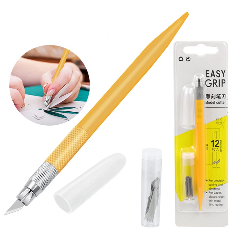 Metal Carving Utility Knife 12 Blades DIY Student Non Slip Craft Paper Cutter Pen Stationery School Art Cutting Supplies Tools | |