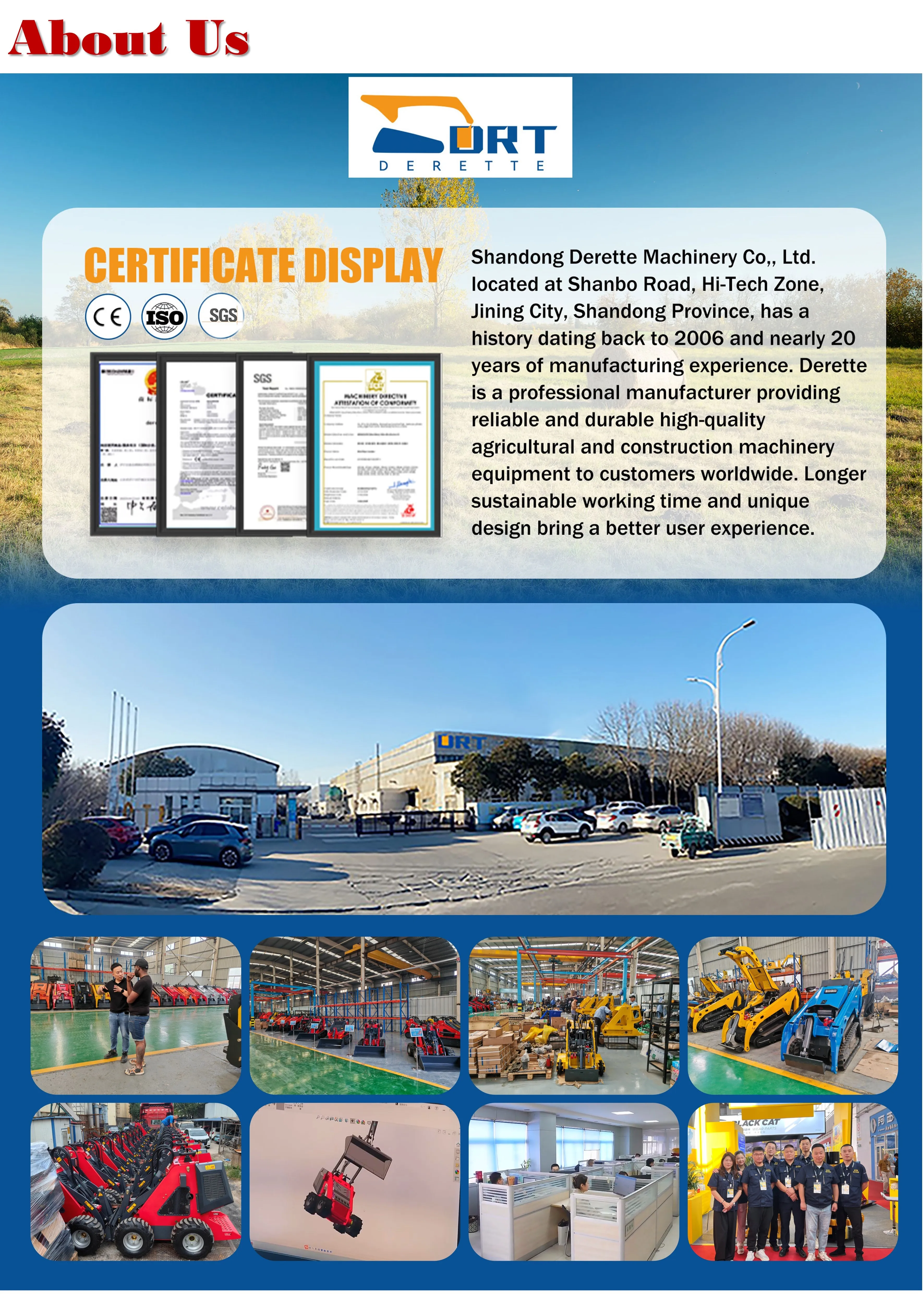 A: Yes. We are manufacturer of construction machines and you can take a video tour of ourfactory anytime during working hours.