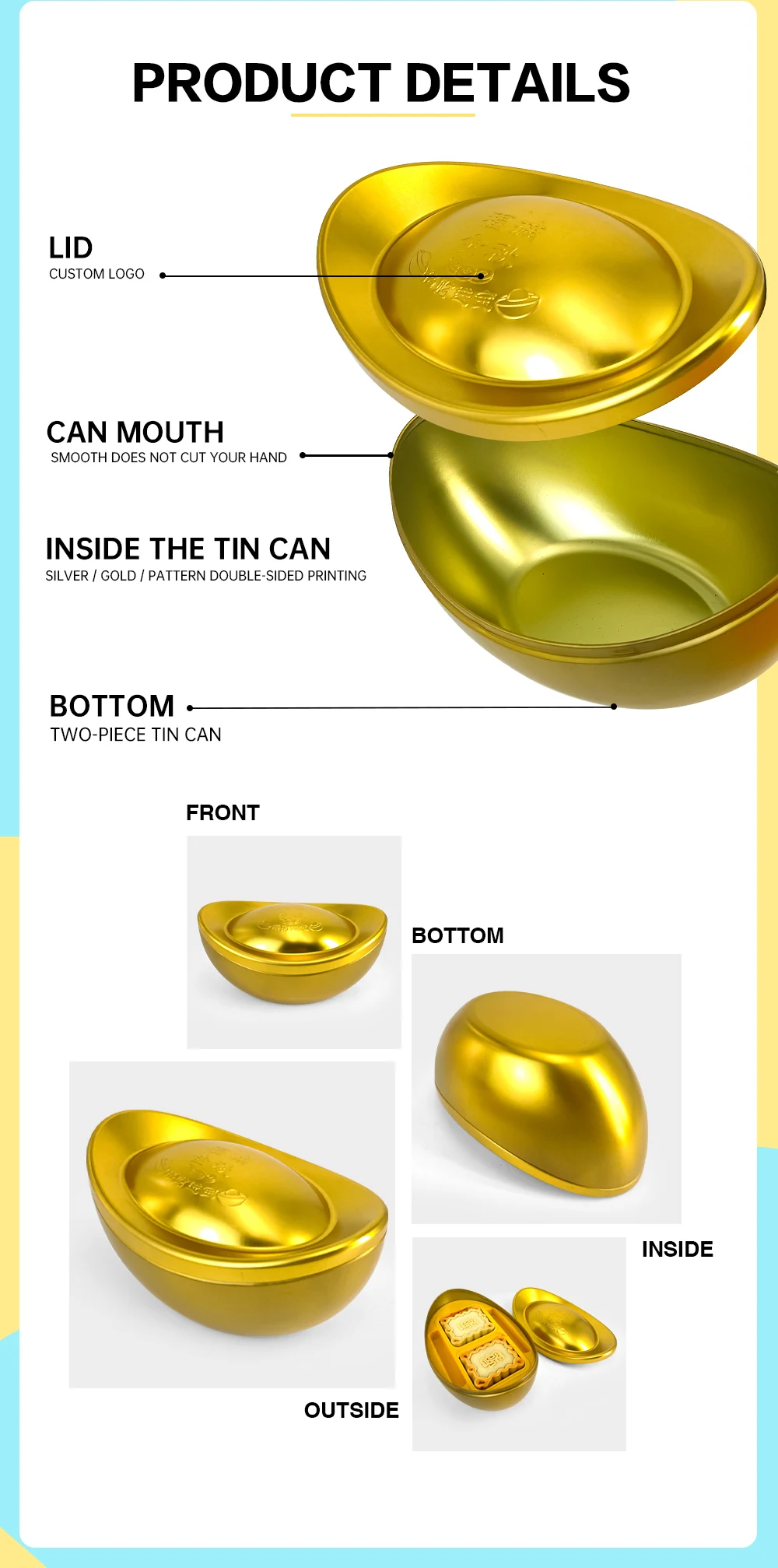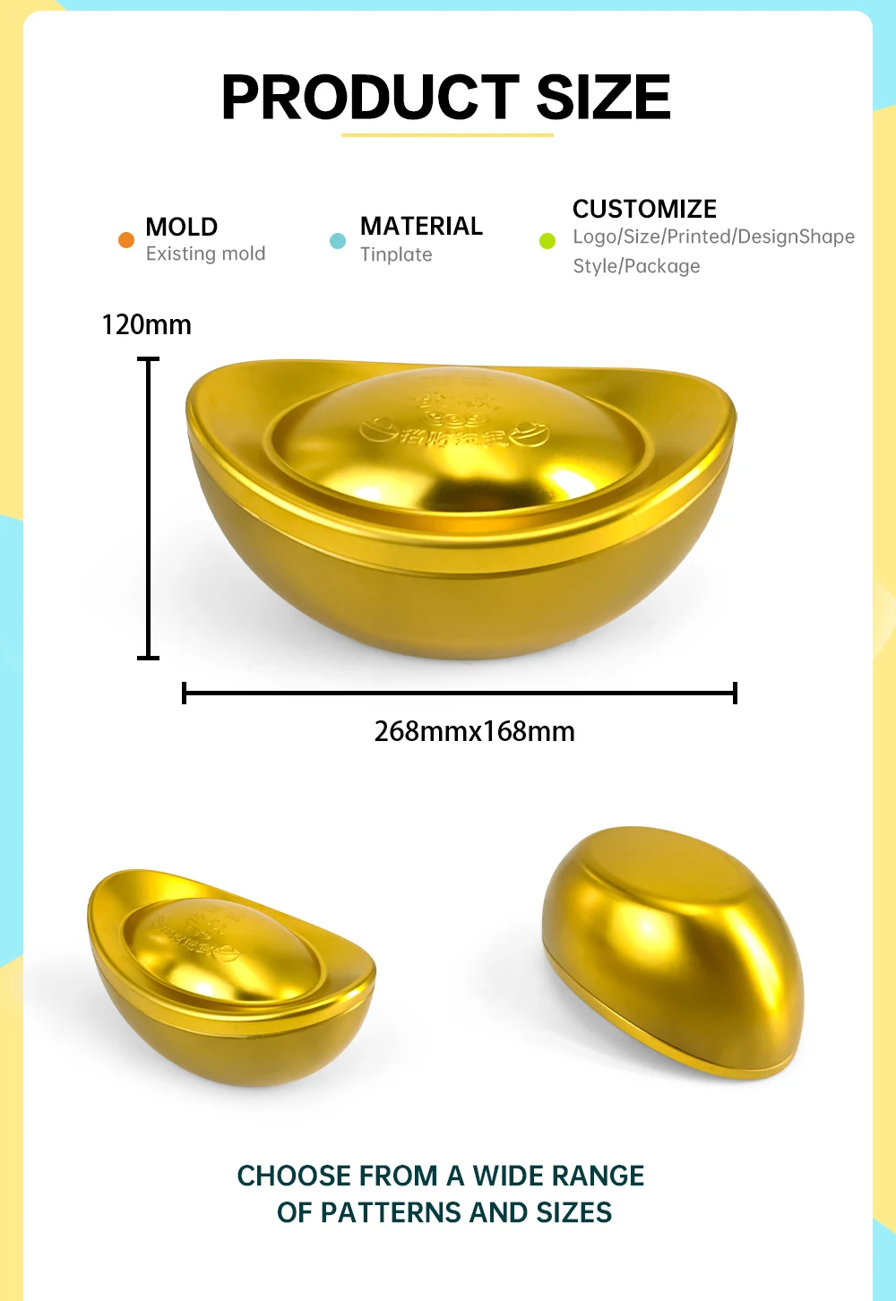 Product name | custom gold ingot tin can |