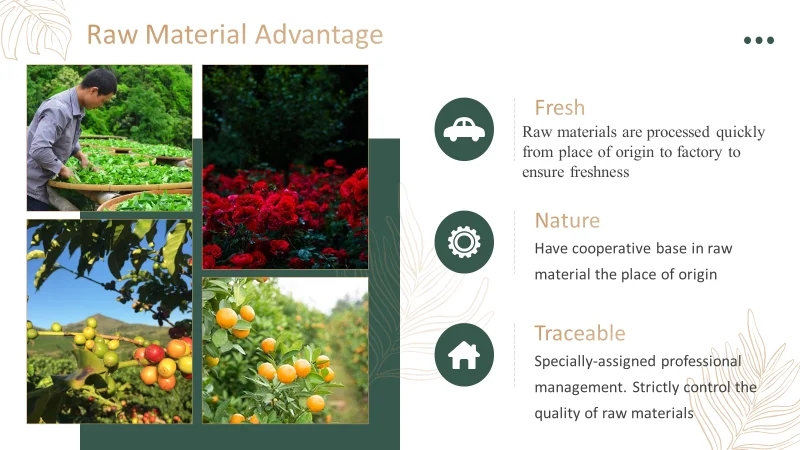 We Yunnan Milion Natural Flavors Co., Ltd is a high-tech enterprise that focuses on deep processing of agricultural products and integrates gathering in research and development, manufacturing and sales. We are specializing in the production of natural plant extract .fruit, edible flower,tea,coffee.........which are used for various of juice, beverage, cold drink,bakery,candy,ice cream and etc.
