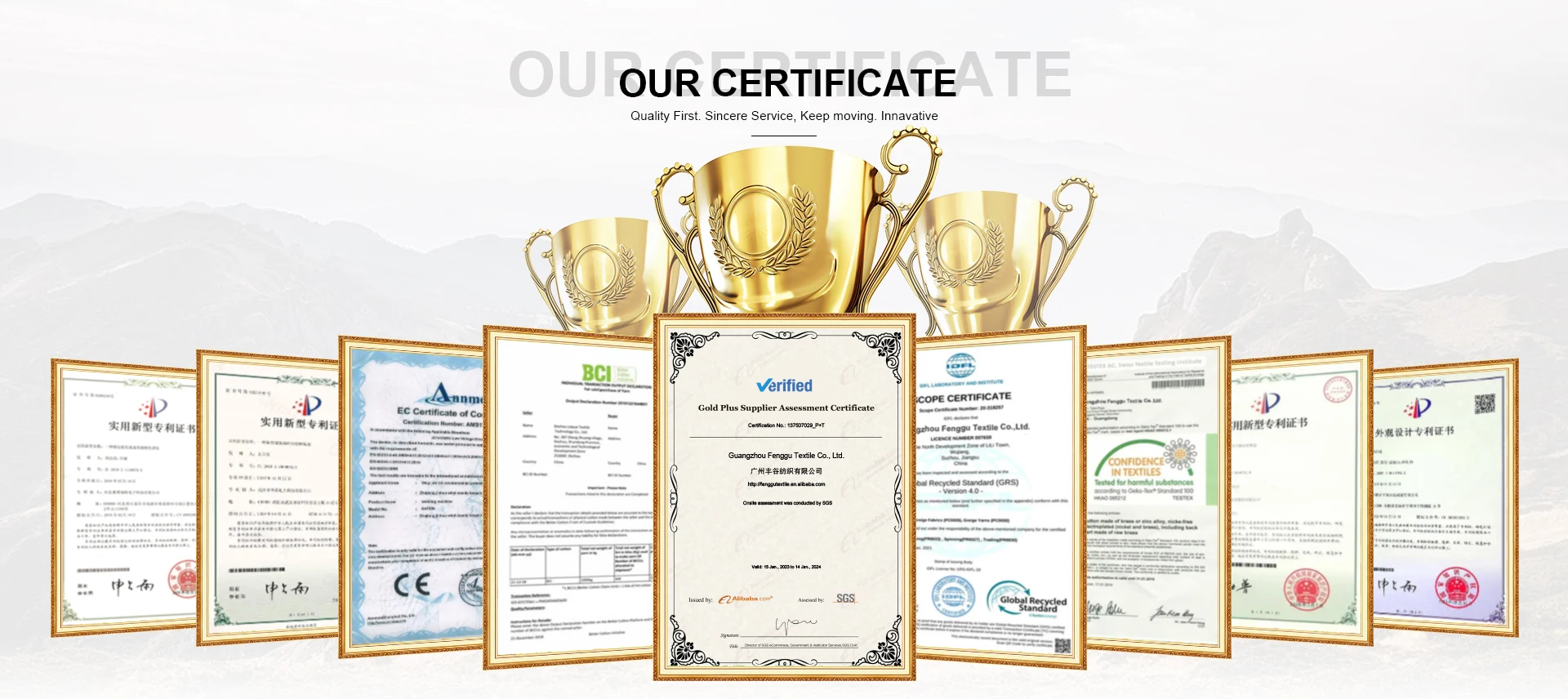 The company will adhere to the value of business ethics , excellence, innovation with passion, and win-win collaboration; we will work in unity with all Feng Gu employees, to realize the mission of helping clients fulfill their brand dreams and provide comfortable and fashionable choice to world.