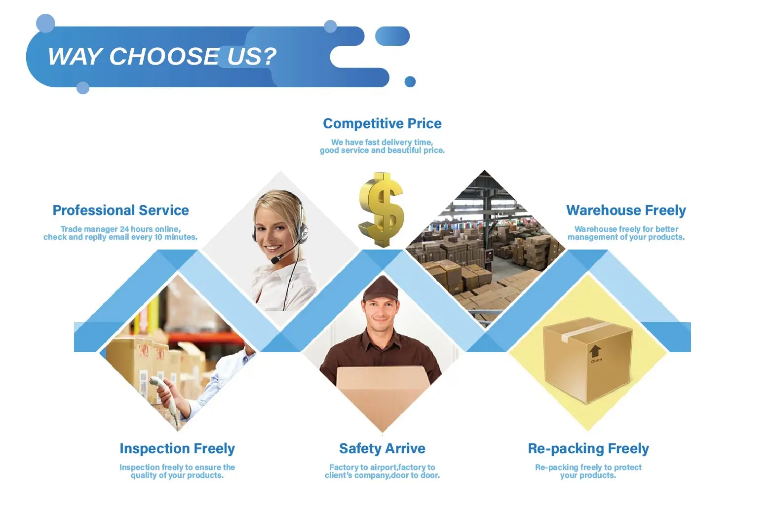 1.Q:What is the price of your service? A:The exact price can be offered when the details of your goods finalized,like