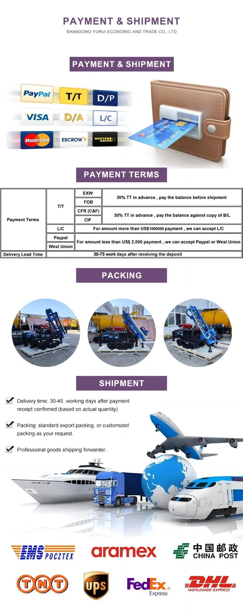 Payment accepted: T/T, L/C, D/P, D/A, Western Union;