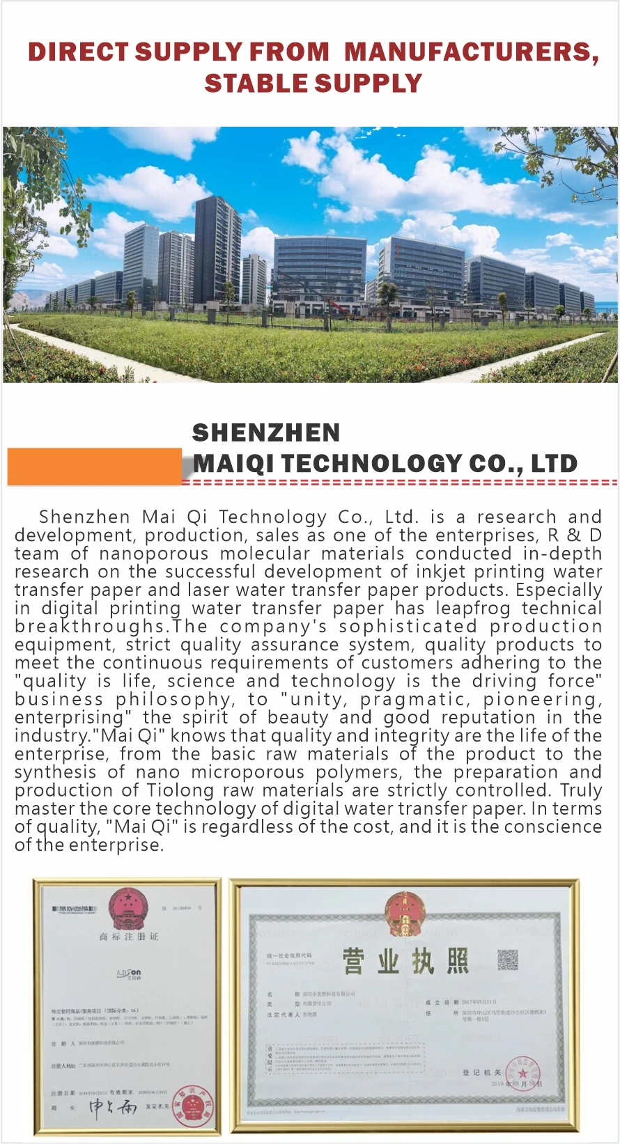 With 16 years of R & D experience, our company has successfully developed a series of blue ocean products of effluent transfer paper, from basic raw materials to polymer synthesis, and truly mastered the core technology of water transfer. The company h