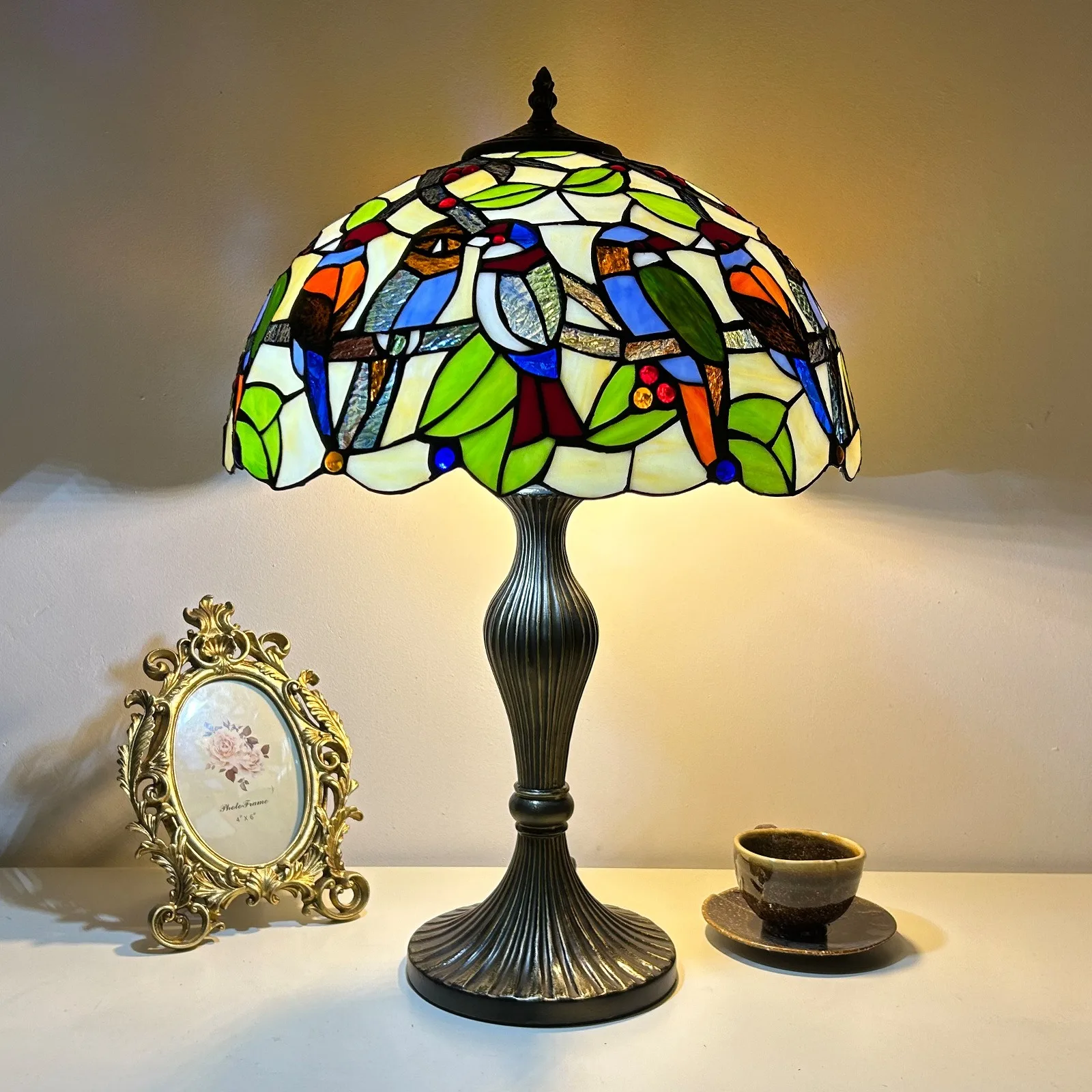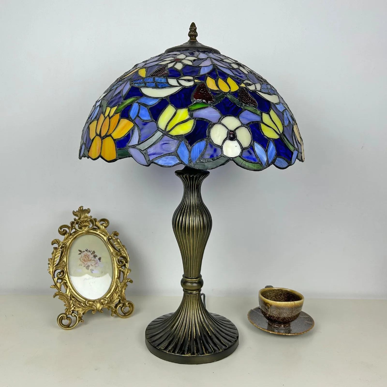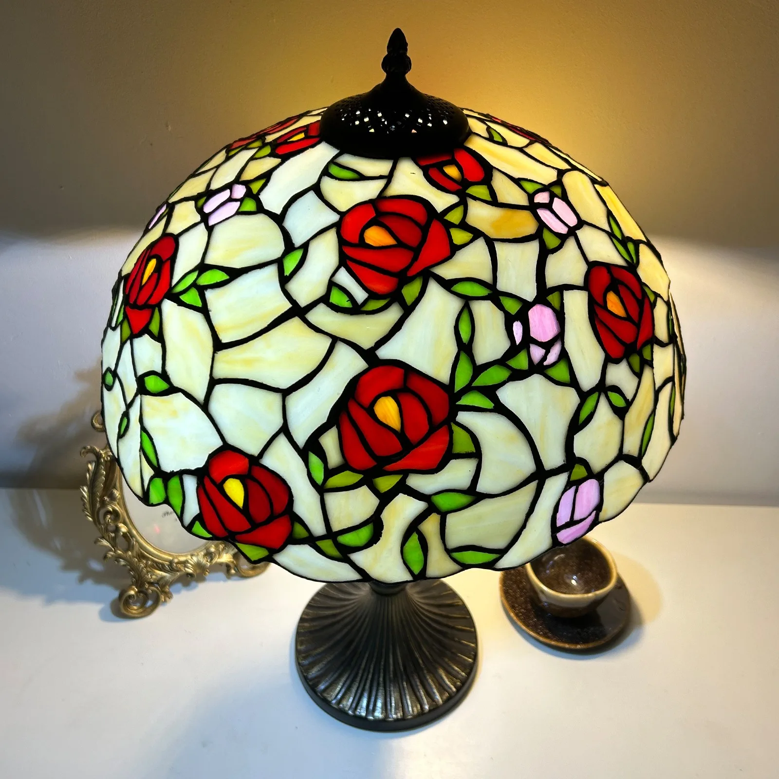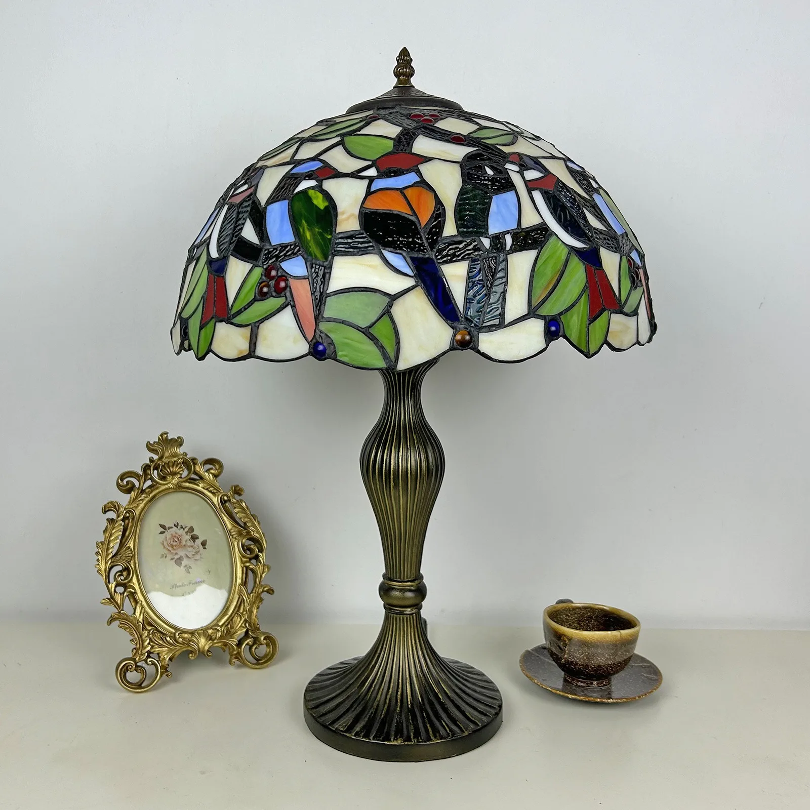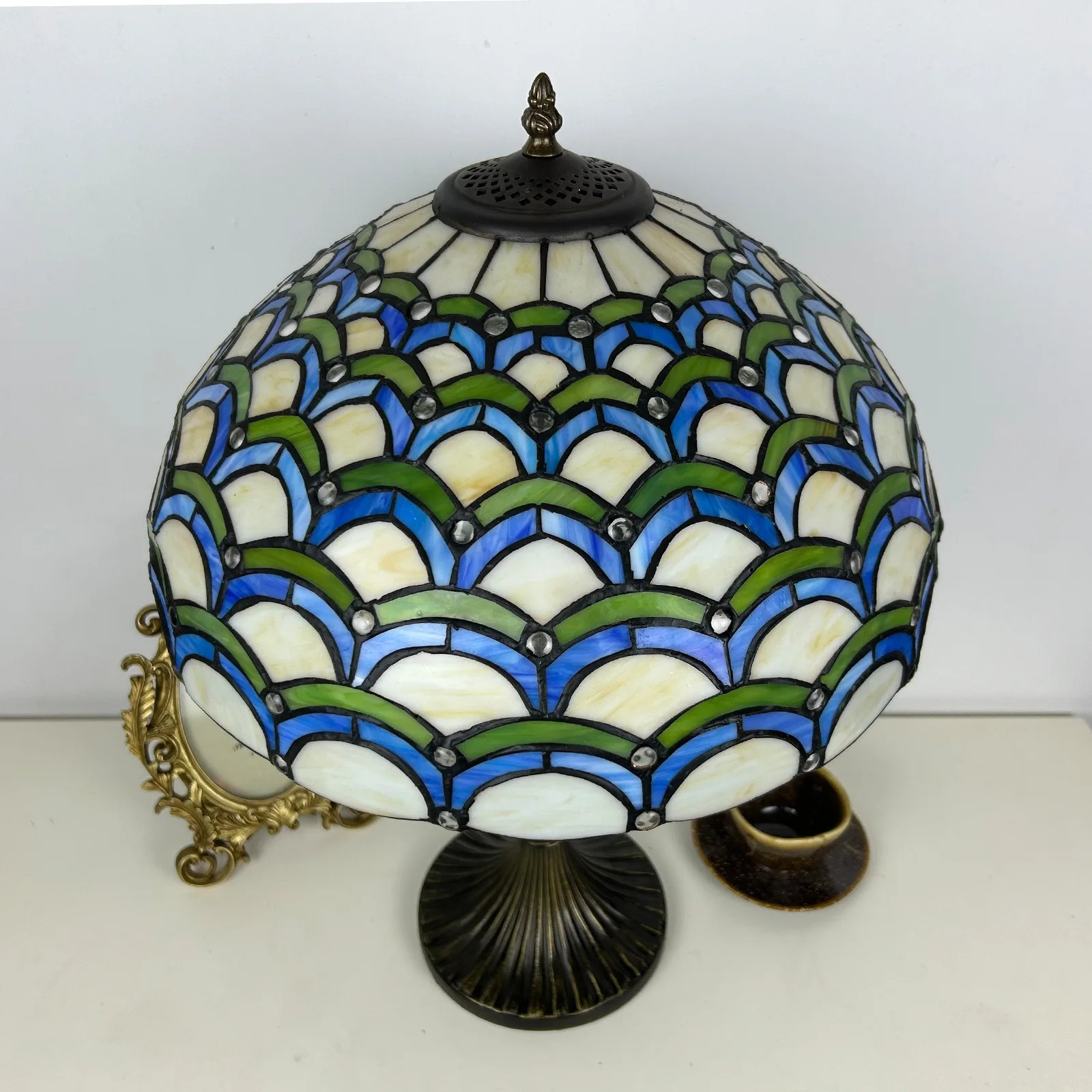 Material: | Stained glass lampshade, zinc alloy stand |