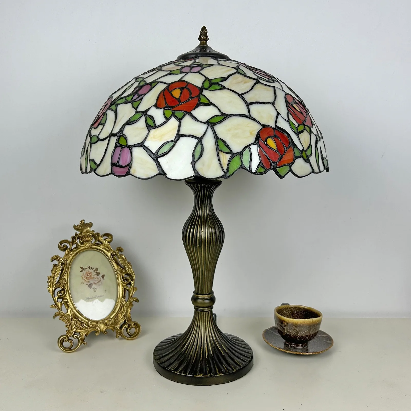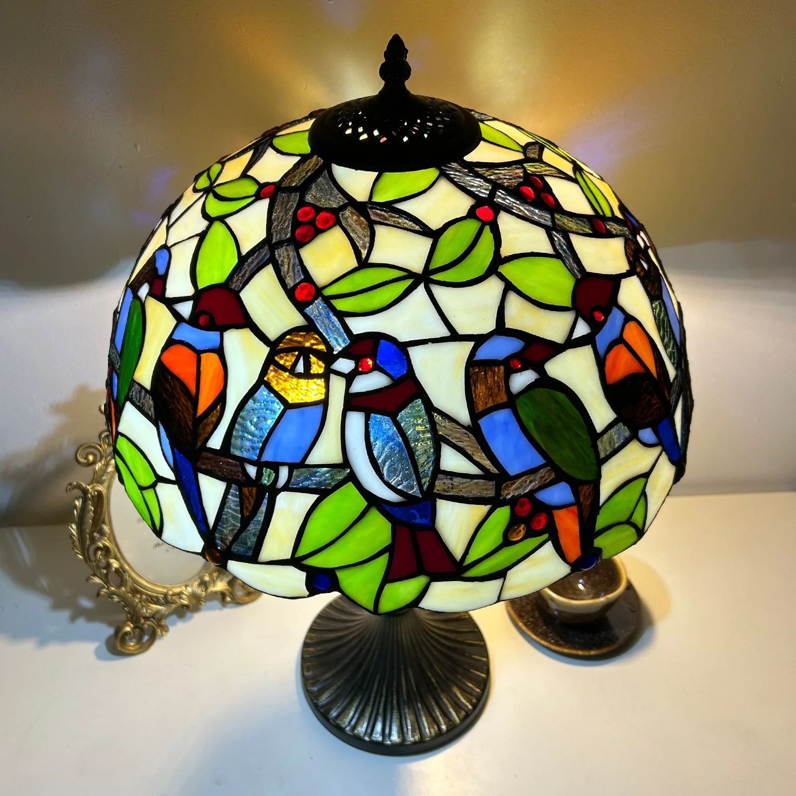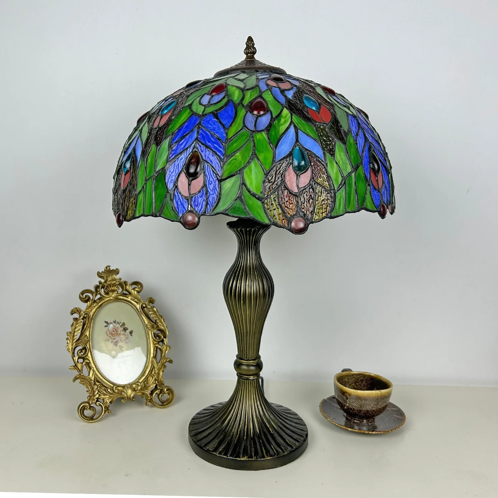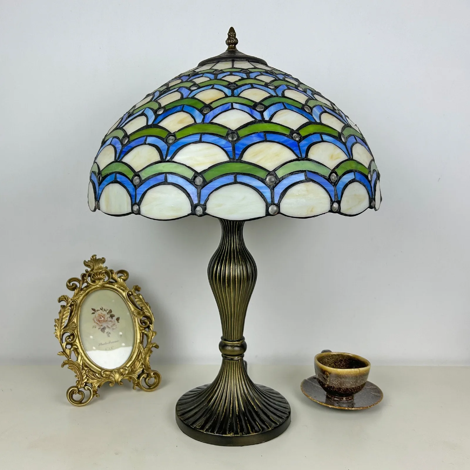 Material: | Stained glass lampshade, zinc alloy stand |
