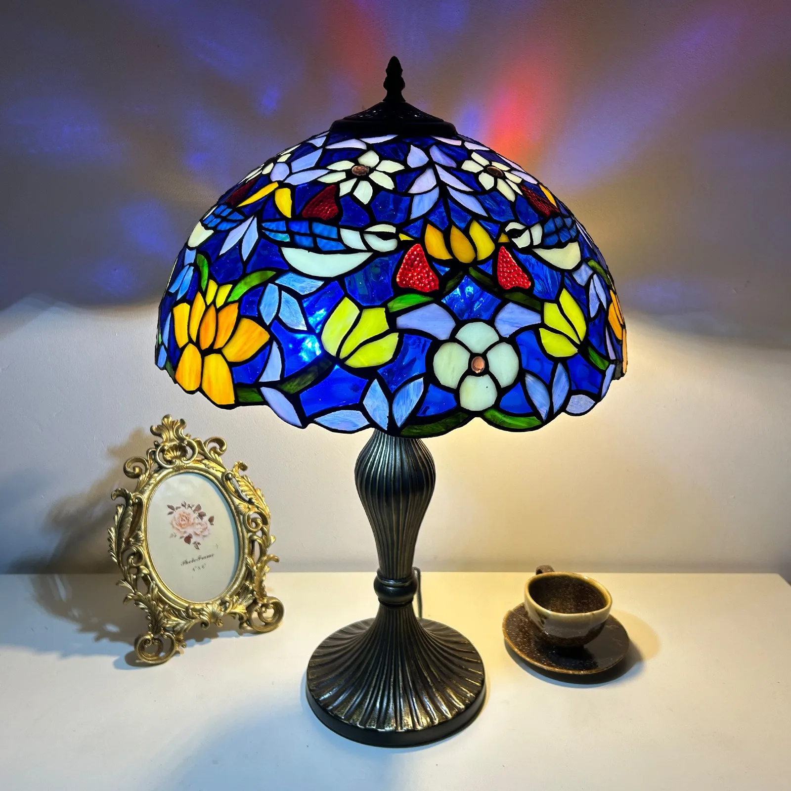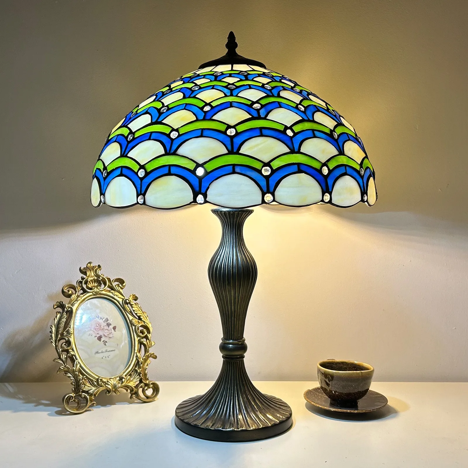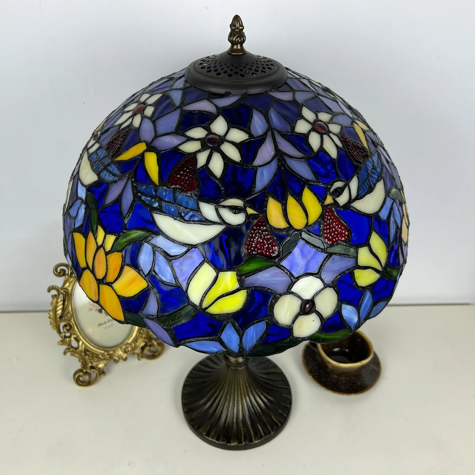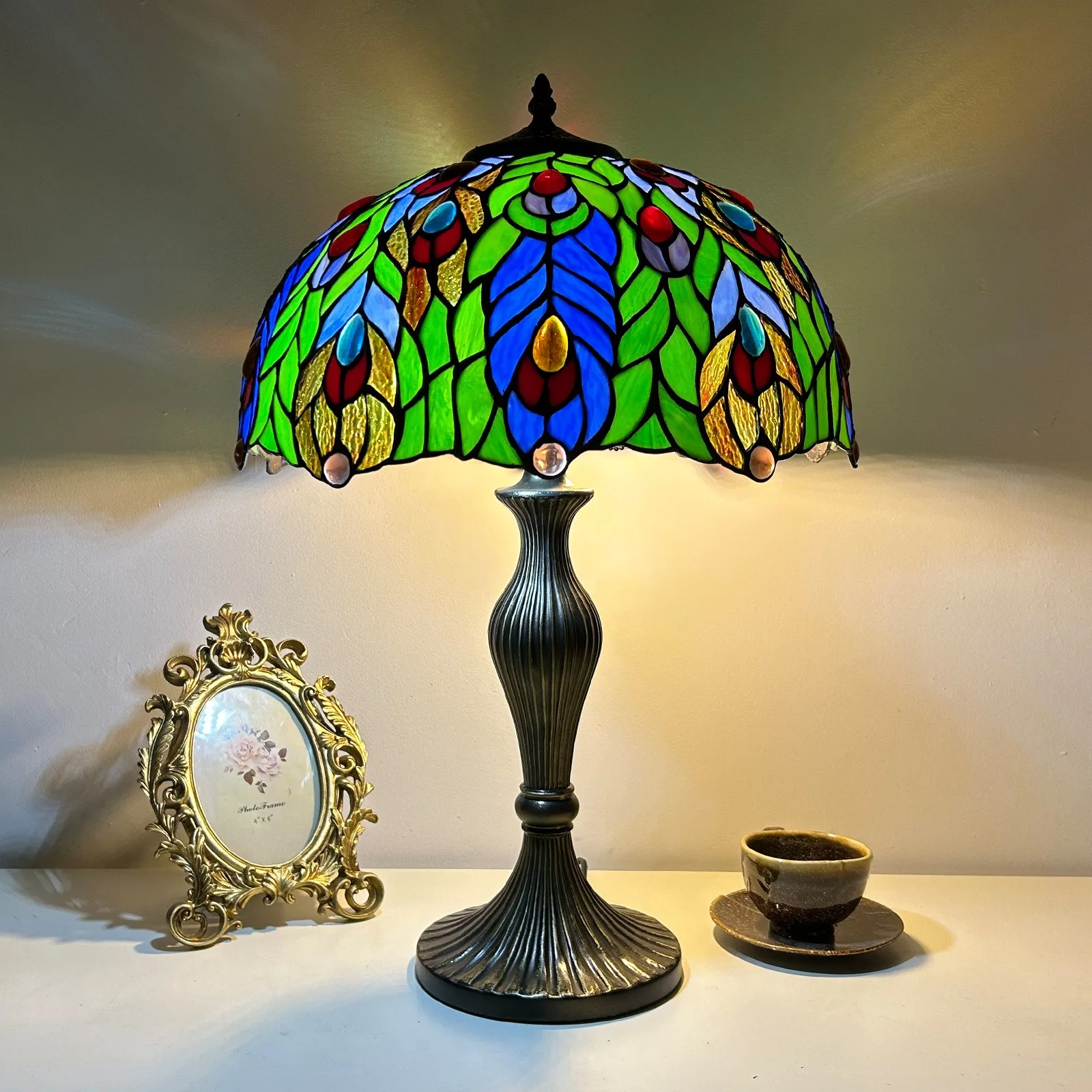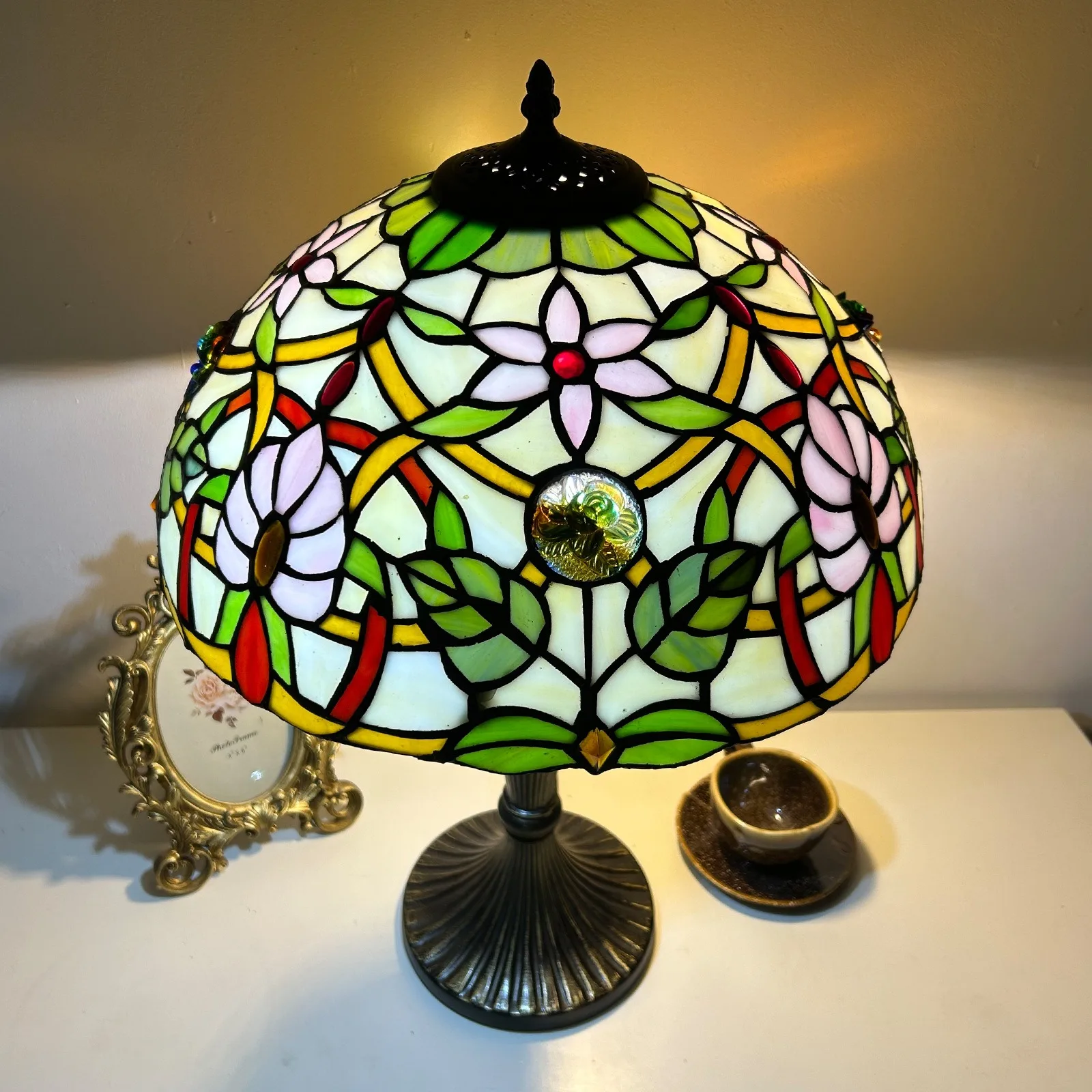 Material: | Stained glass lampshade, zinc alloy stand |