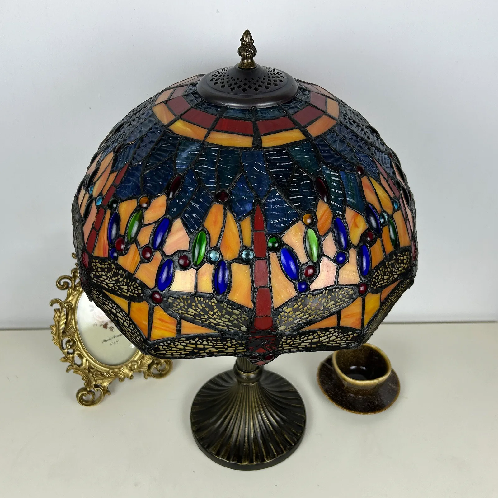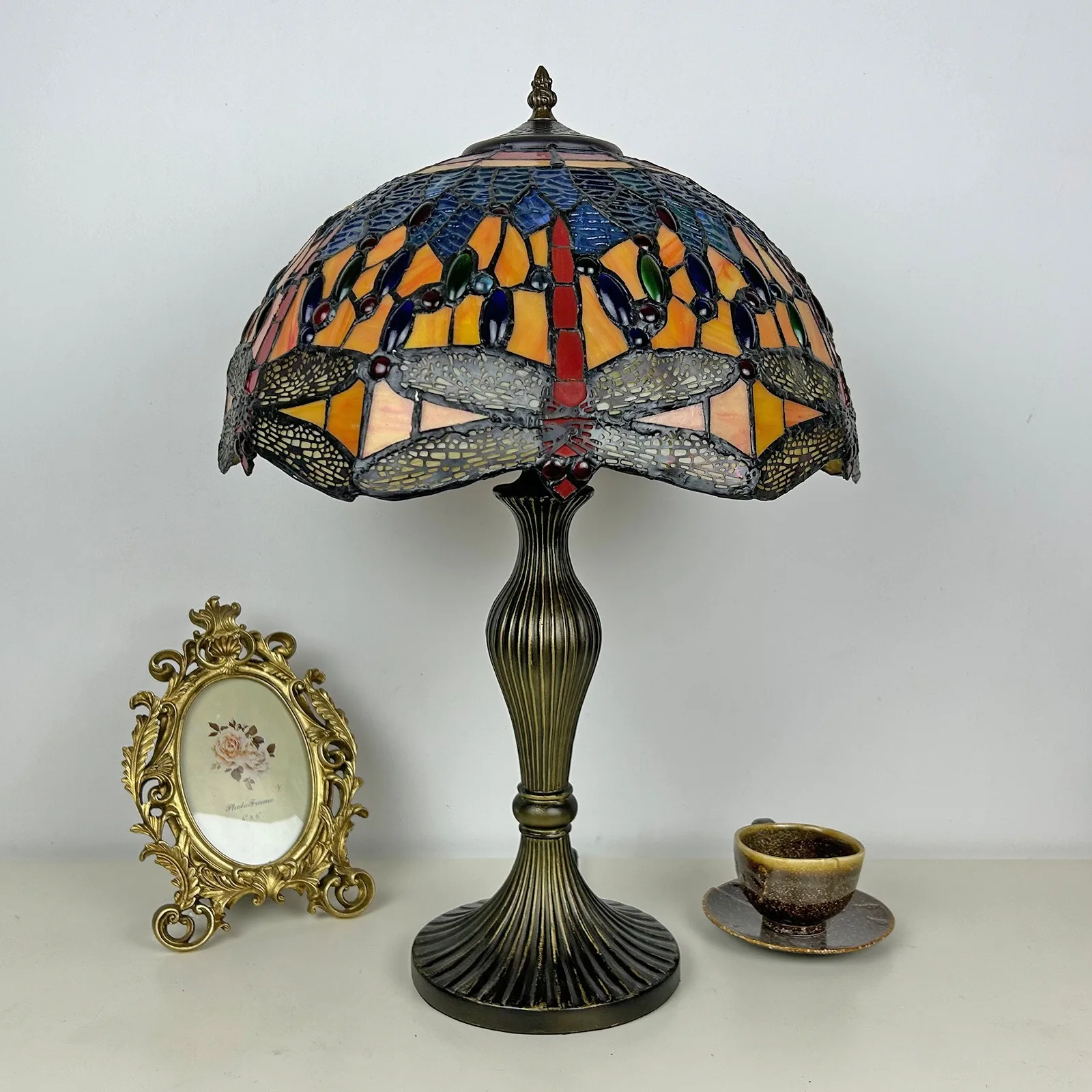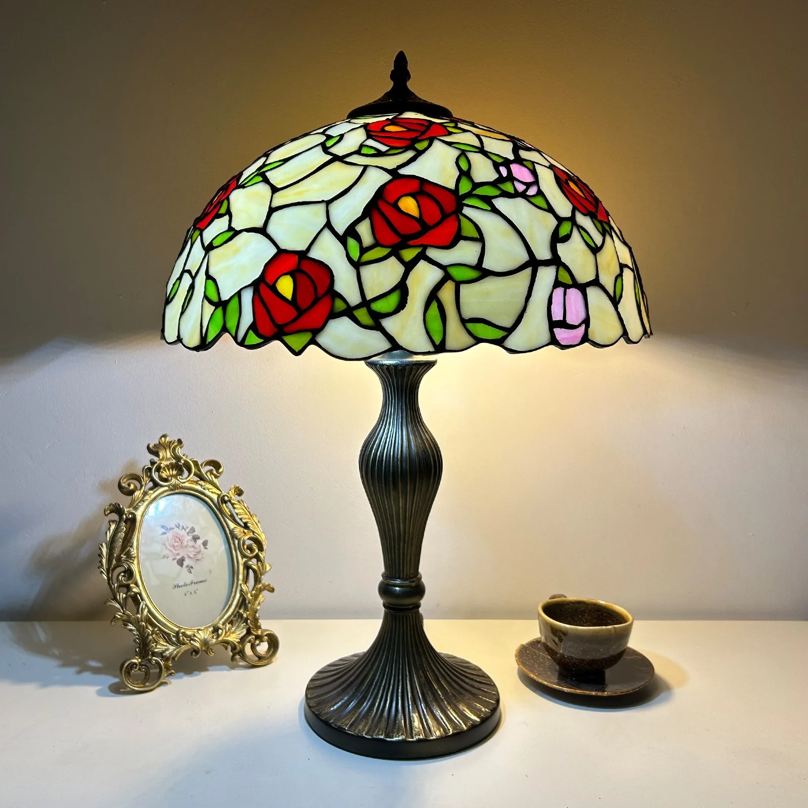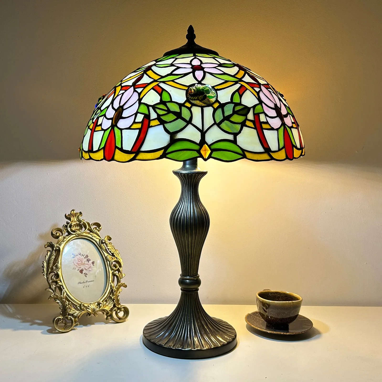 Material: | Stained glass lampshade, zinc alloy stand |