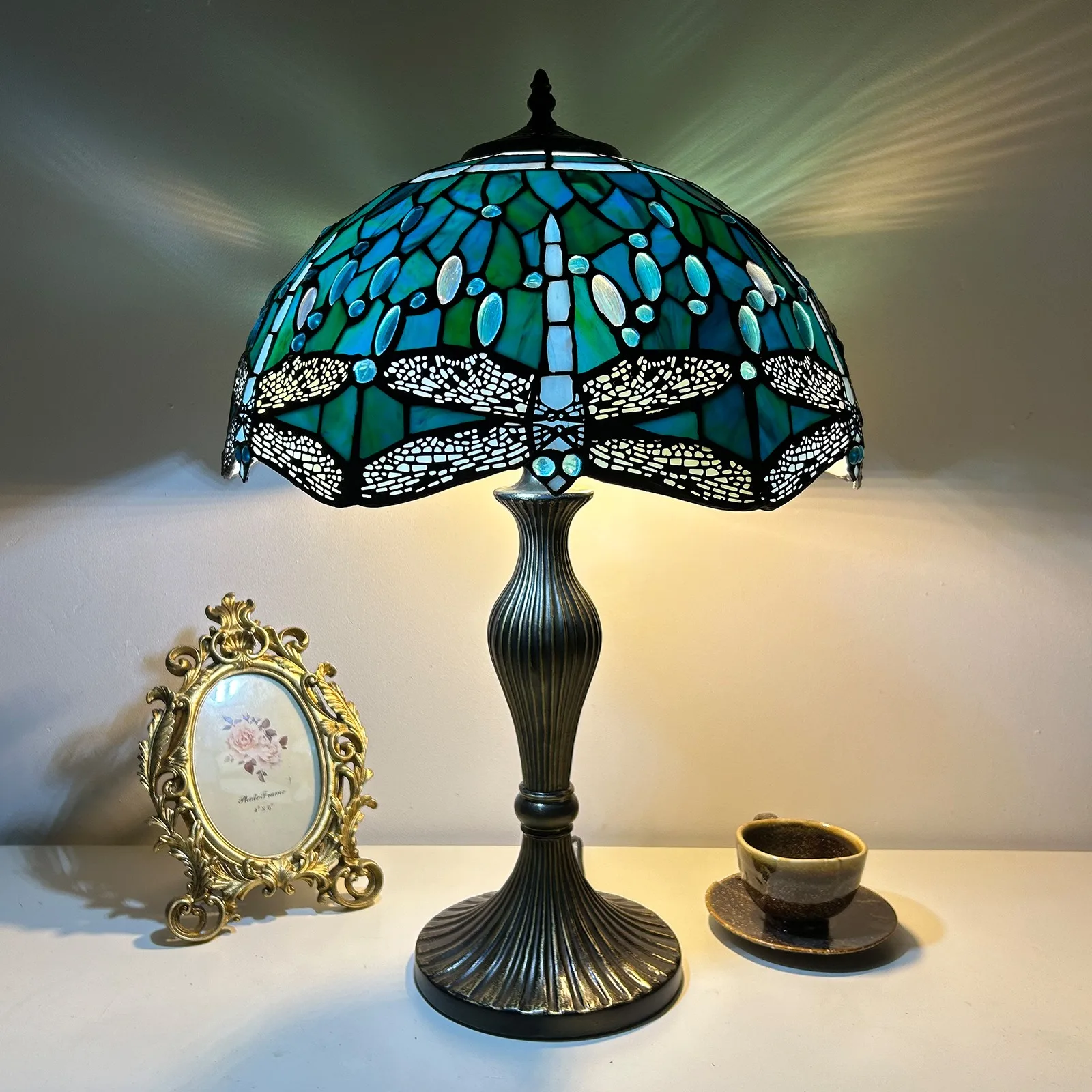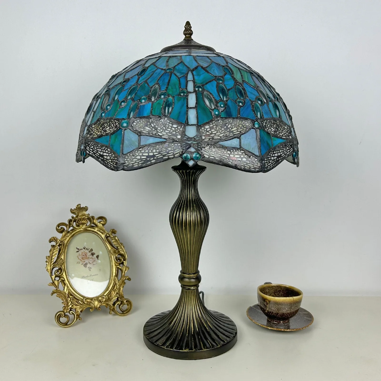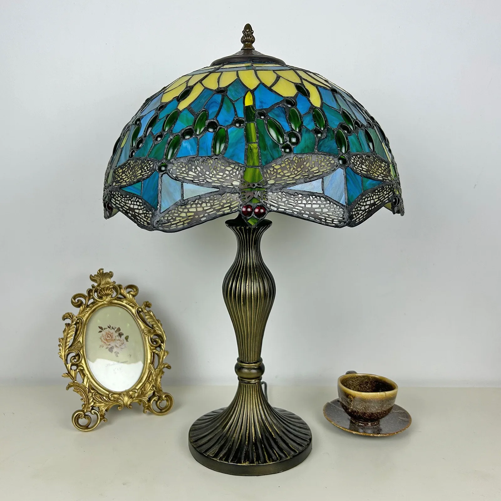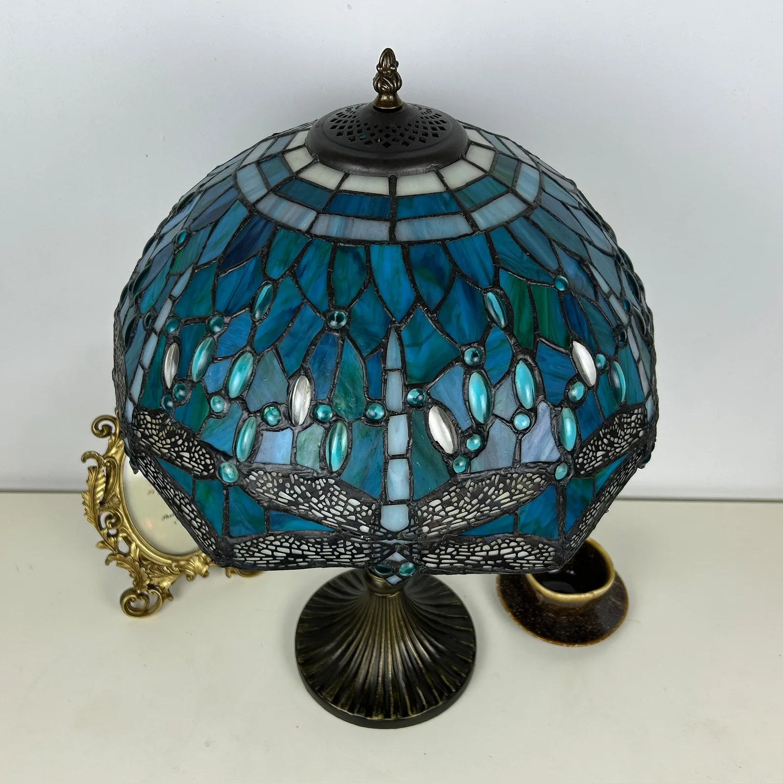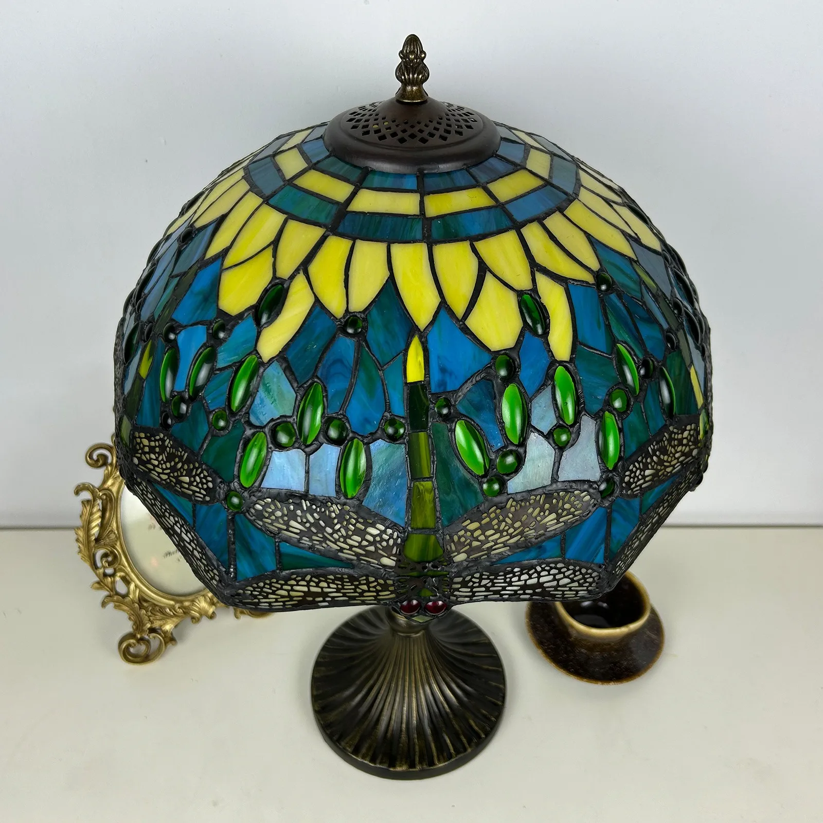 Material: | Stained glass lampshade, zinc alloy stand |