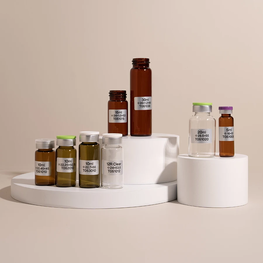 - Tubular glass vials (low-borosilicate or neutral borosilicate, clear color or amber color, from 2ml to 30ml), rubber stoppers and aluminium caps or flip off caps that can match them;