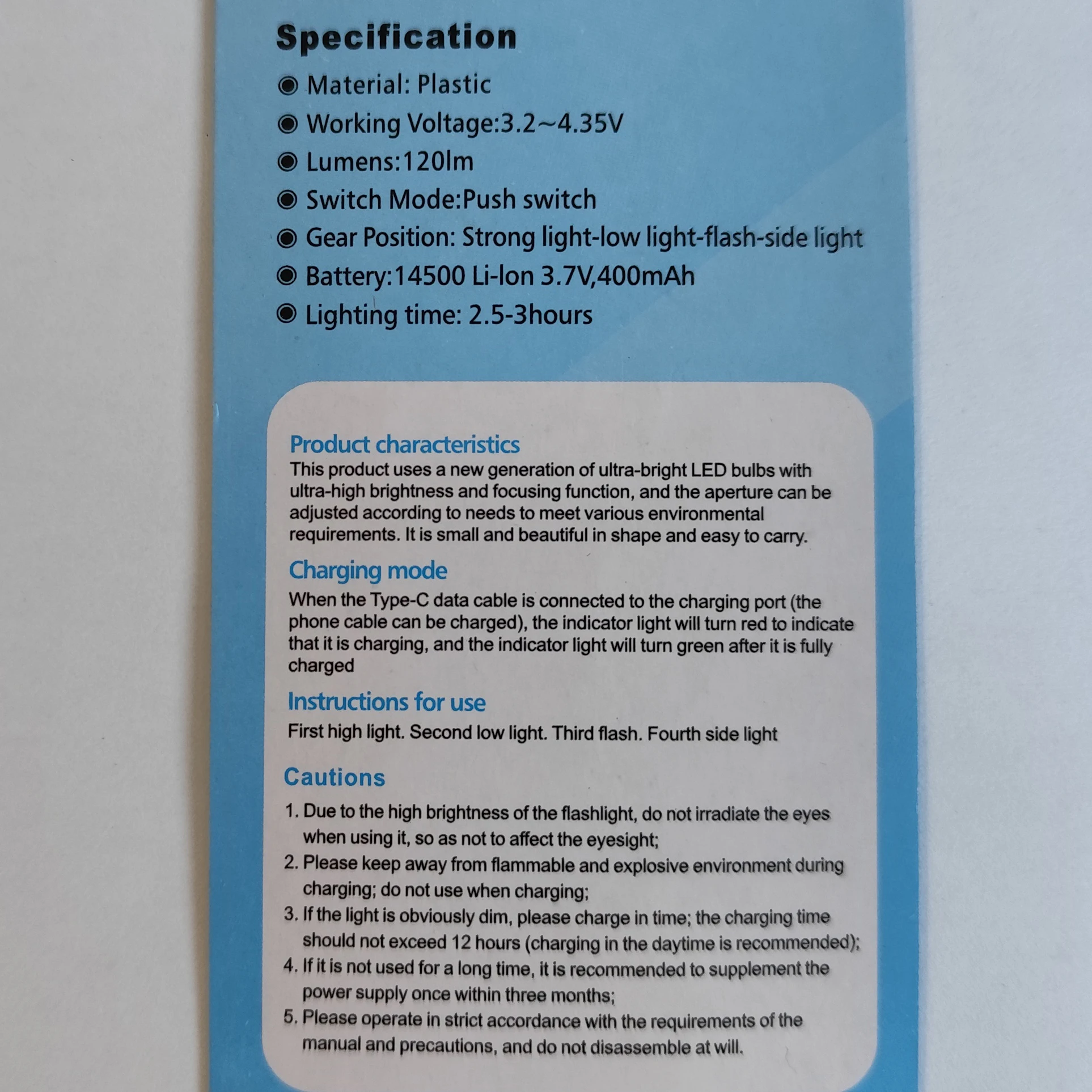 Product Name | New pocket torchlight mini small rechargeable led torch light with side light Type-c charged |